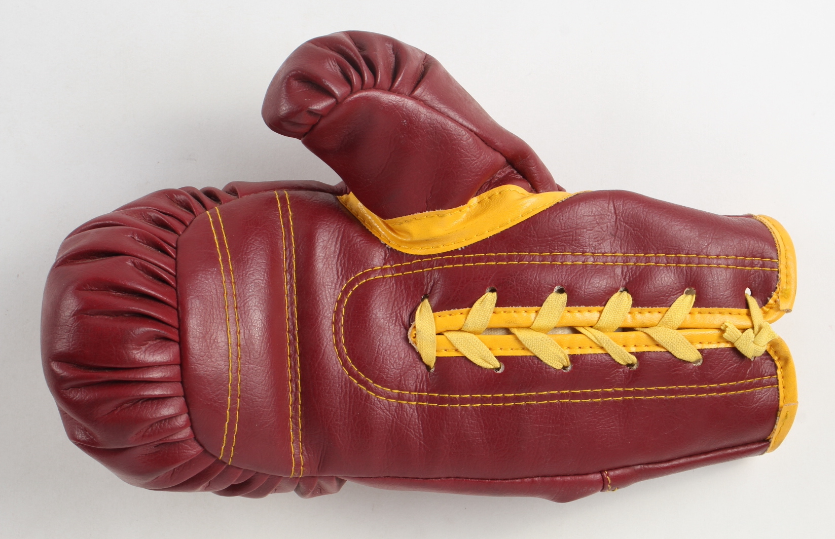 1950s Vintage Sugar ray Robinson boxing glove. Hand-signed by Mike Tyson (HOF). Display case is included as shown.