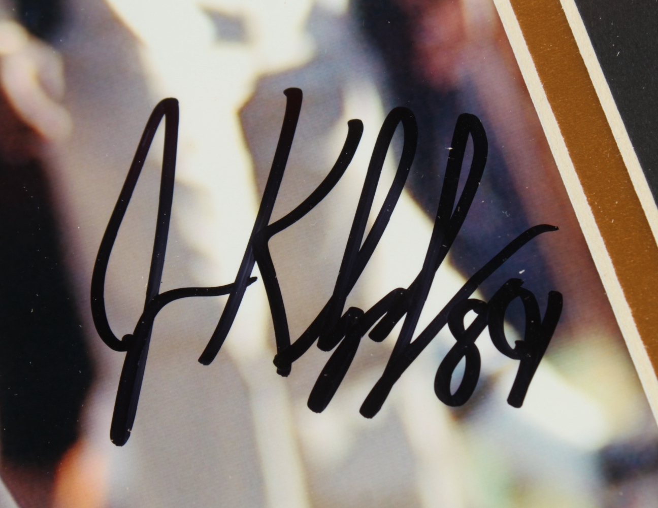 Custom frame measures approximately 13" x 16" in size and features a photo that has been hand-signed by Joe Klopfenstein.