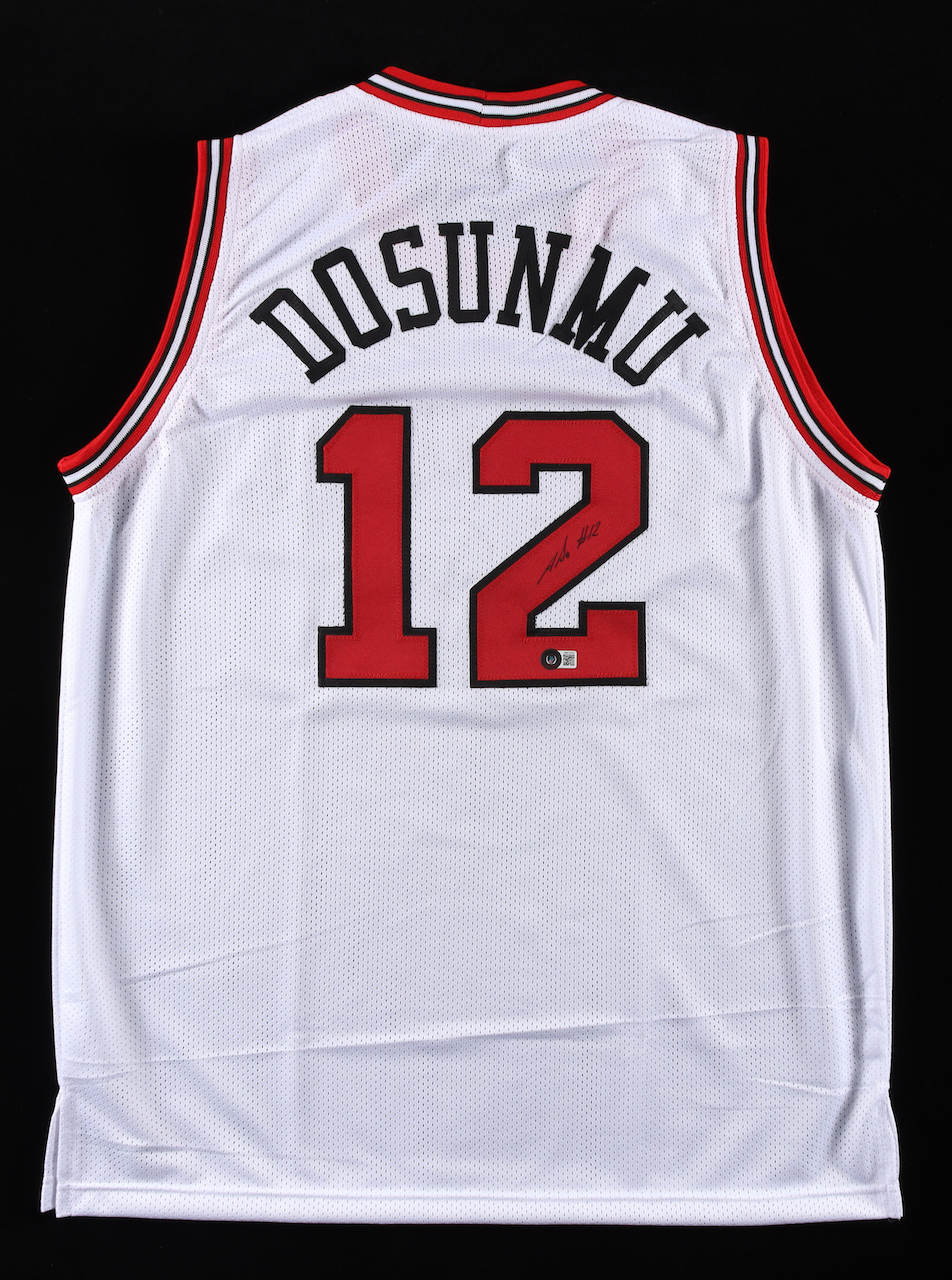 Custom on-court style jersey. Everything is sewn on, size XL. Hand-signed by Ayo Dosunmu.