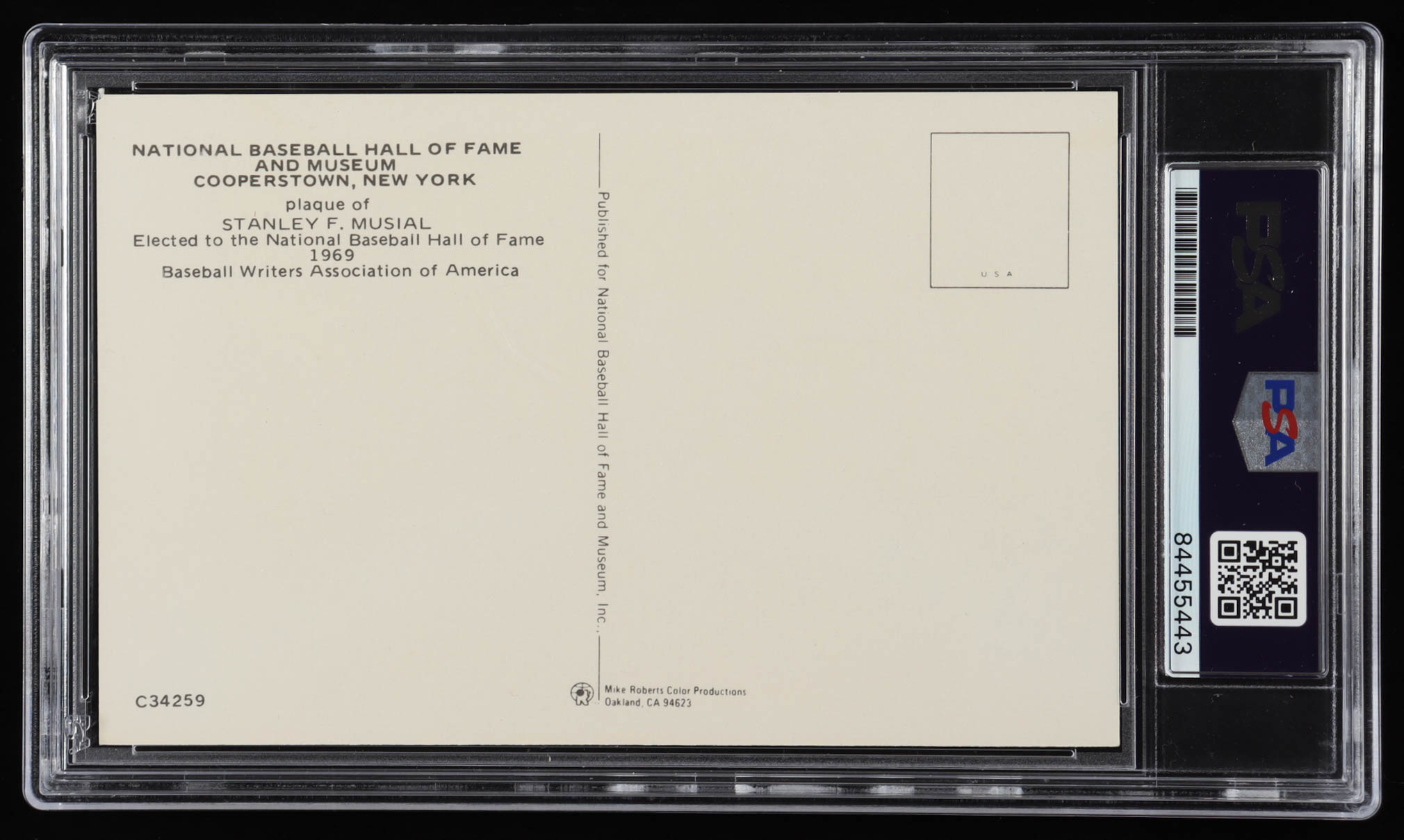 Stan Musial Signed Hall of Fame Plaque Postcard (PSA)