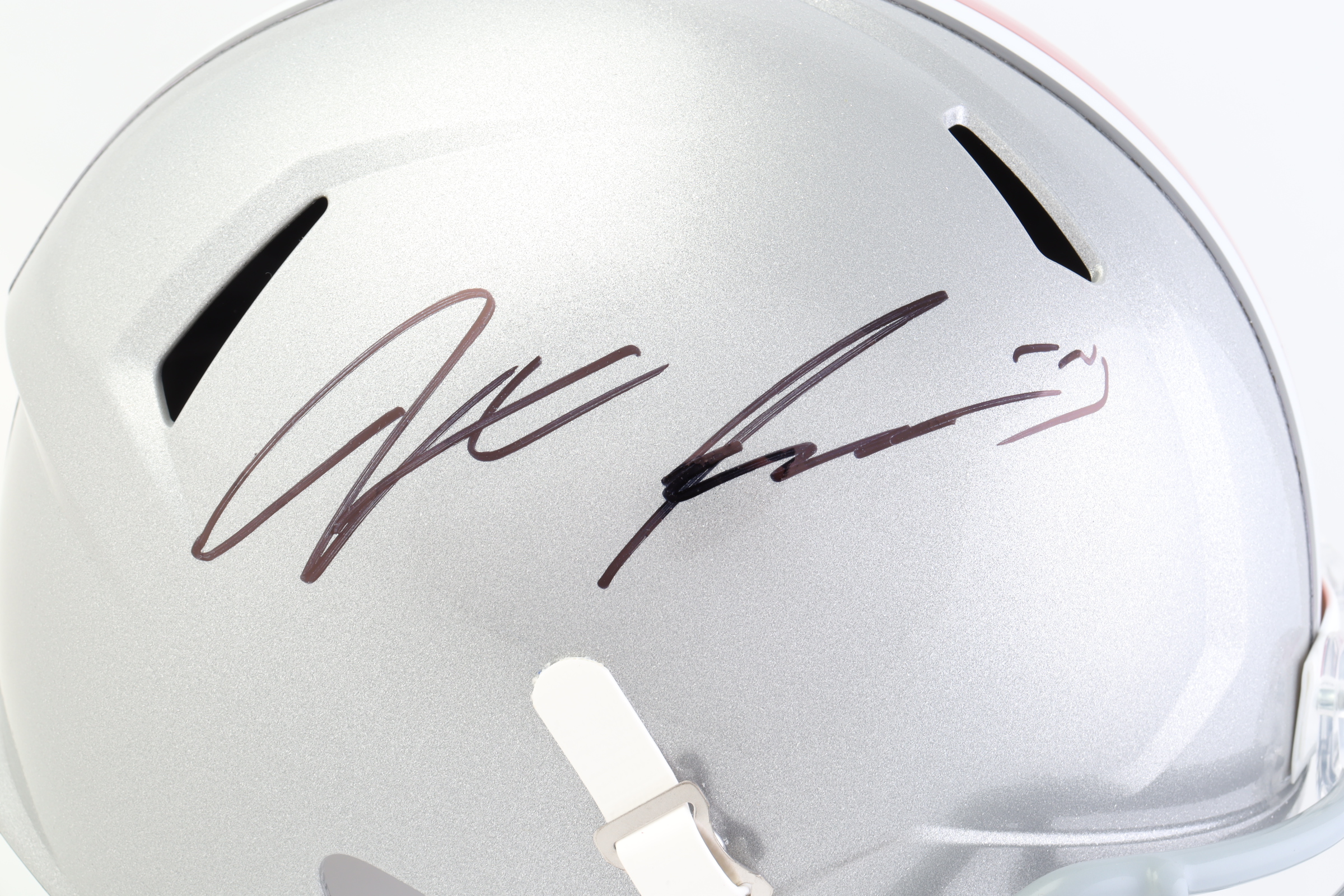 Riddell Ohio State Buckeyes Full-size replica flash alternate Speed helmet. Hand-signed by Jaxon Smith-Njigba.