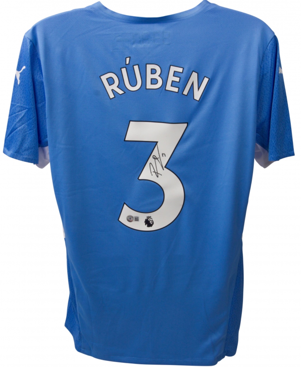 Puma on-field style jersey. Everything is printed on, size L. Hand-signed by Ruben Dias (Manchester City F.C.).