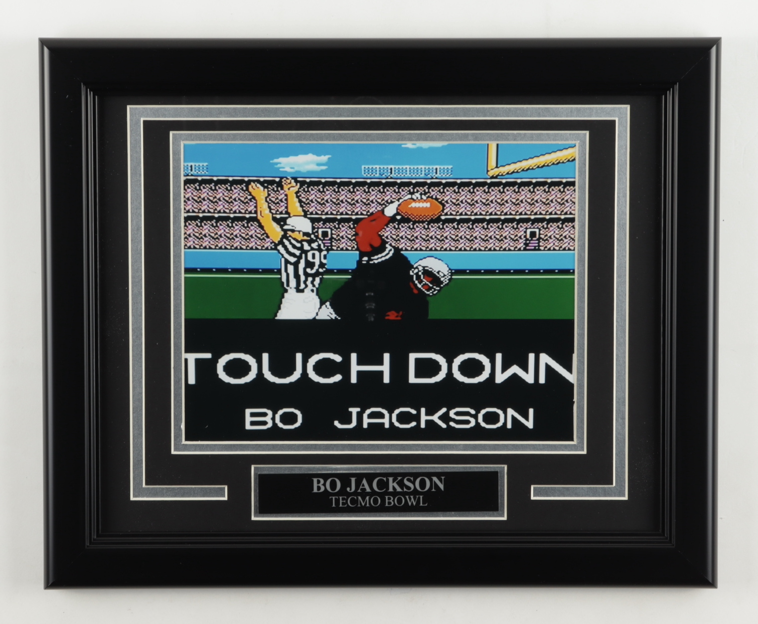 Custom frame measures approximately 14" x 16" in size and features a photo of Bo Jackson (Los Angeles Raiders) in "Tecmo Bowl".