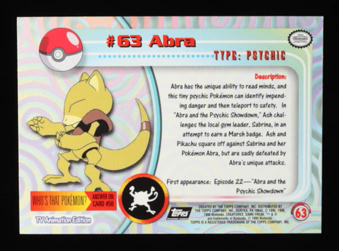 Abra 1999 Pokemon TV Animation Series 1 Black #63