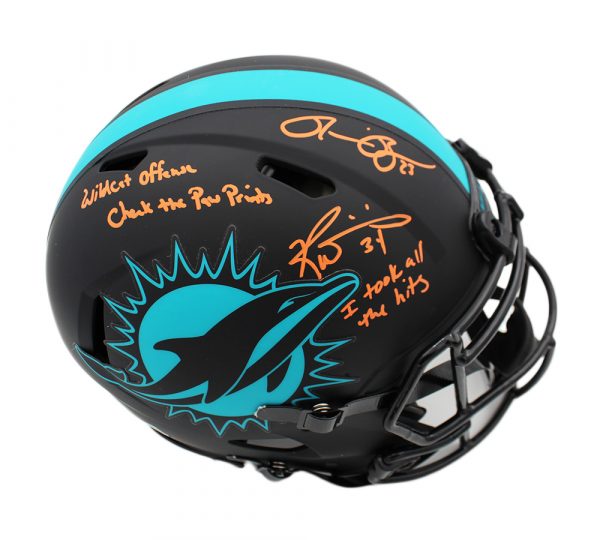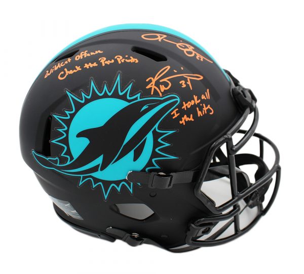 Riddell Miami Dolphins full-size authentic on-field Eclipse Alternate speed helmet. Hand-signed and inscribed by Ricky Williams & Ronnie Brown.