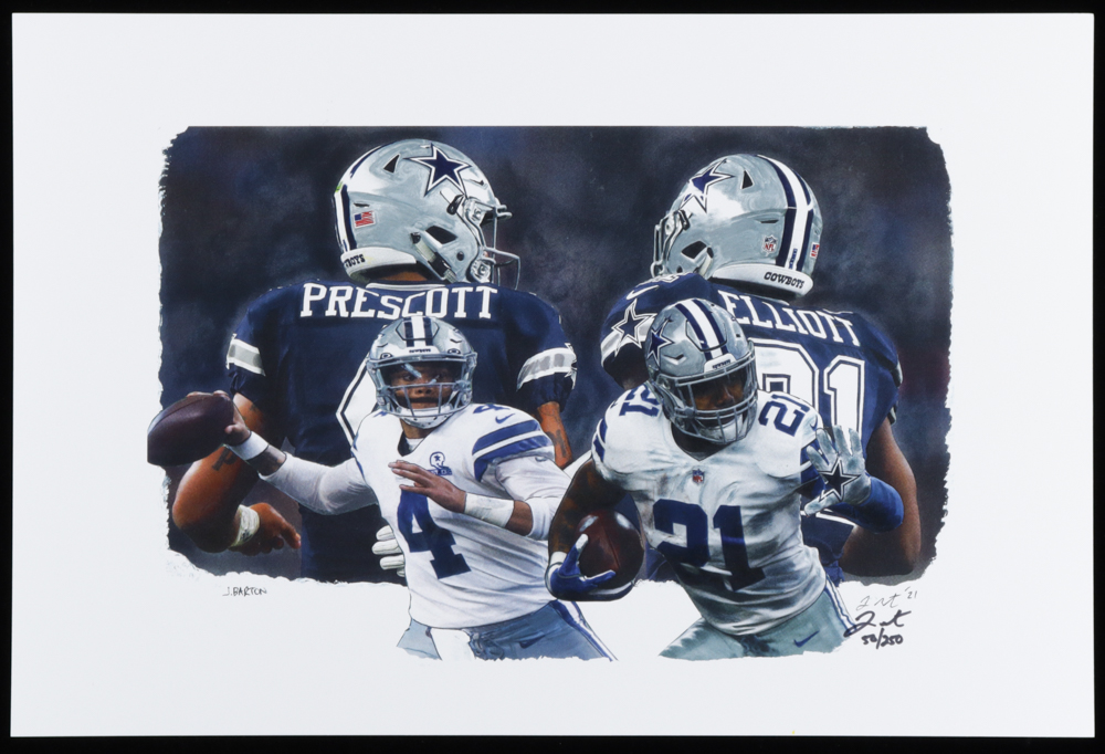 Ezekiel Elliott & Dak Prescott - Cowboys - Joshua Barton 12x18 Signed LE Lithograph #/250 (PA)