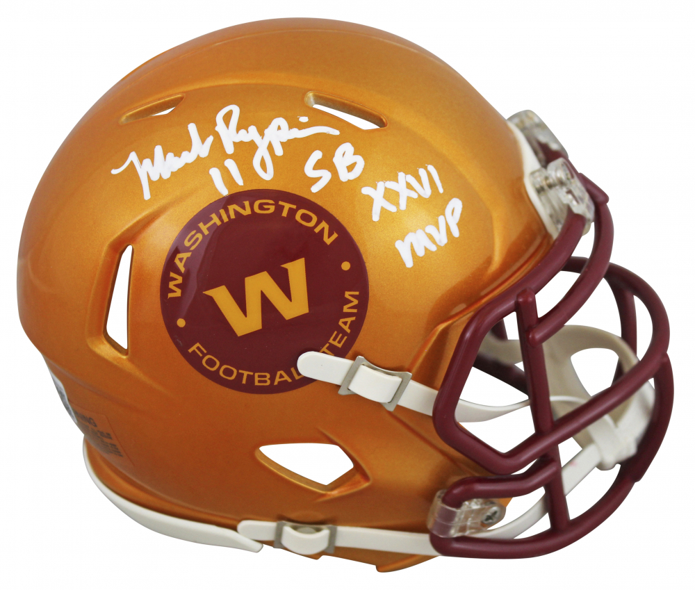 Riddell Washington Football Team Flash Alternate Speed mini helmet. Hand-signed and inscribed by Mark Rypien.
