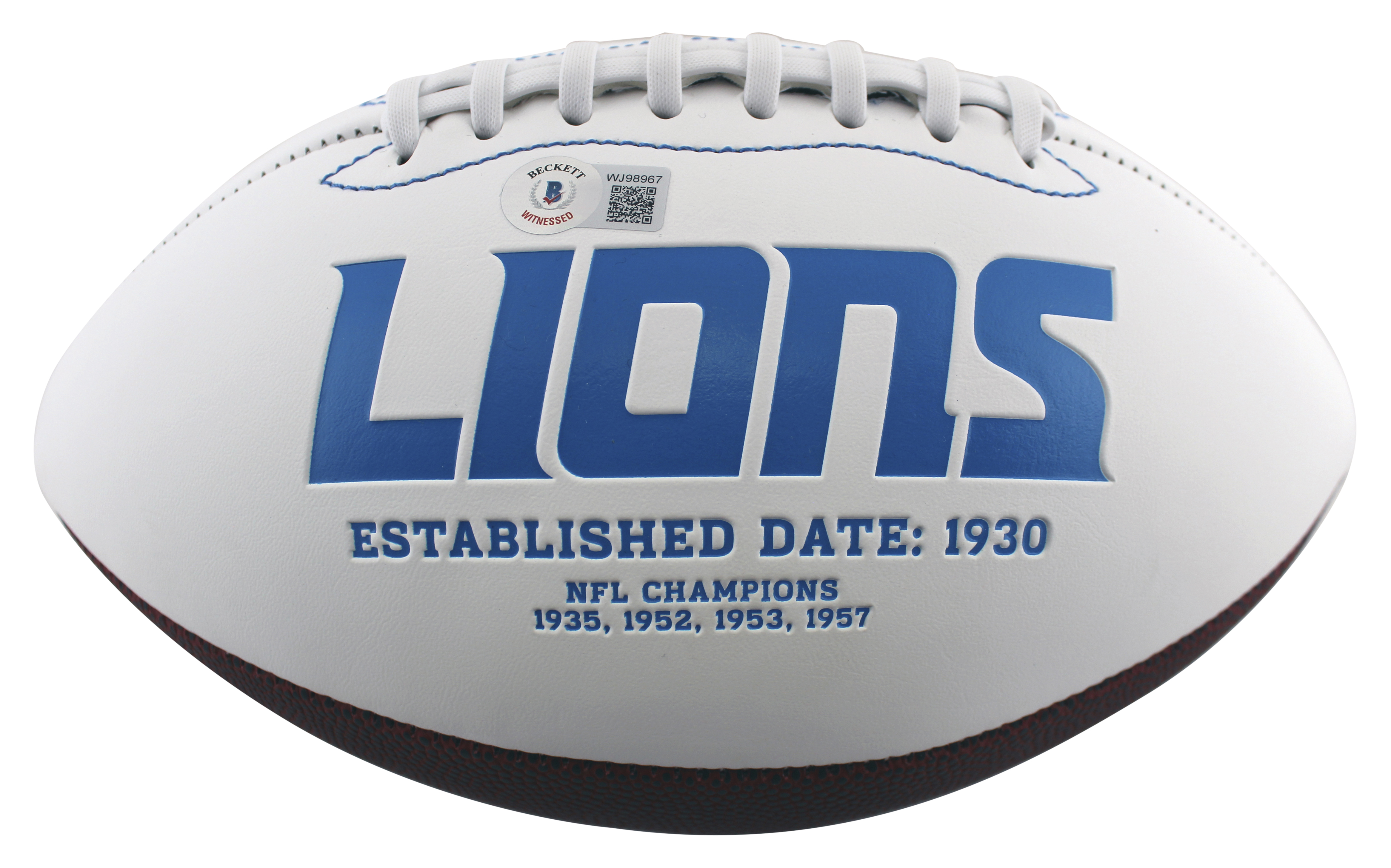 Detroit Lions logo football. Hand-signed by T. J. Hockenson.