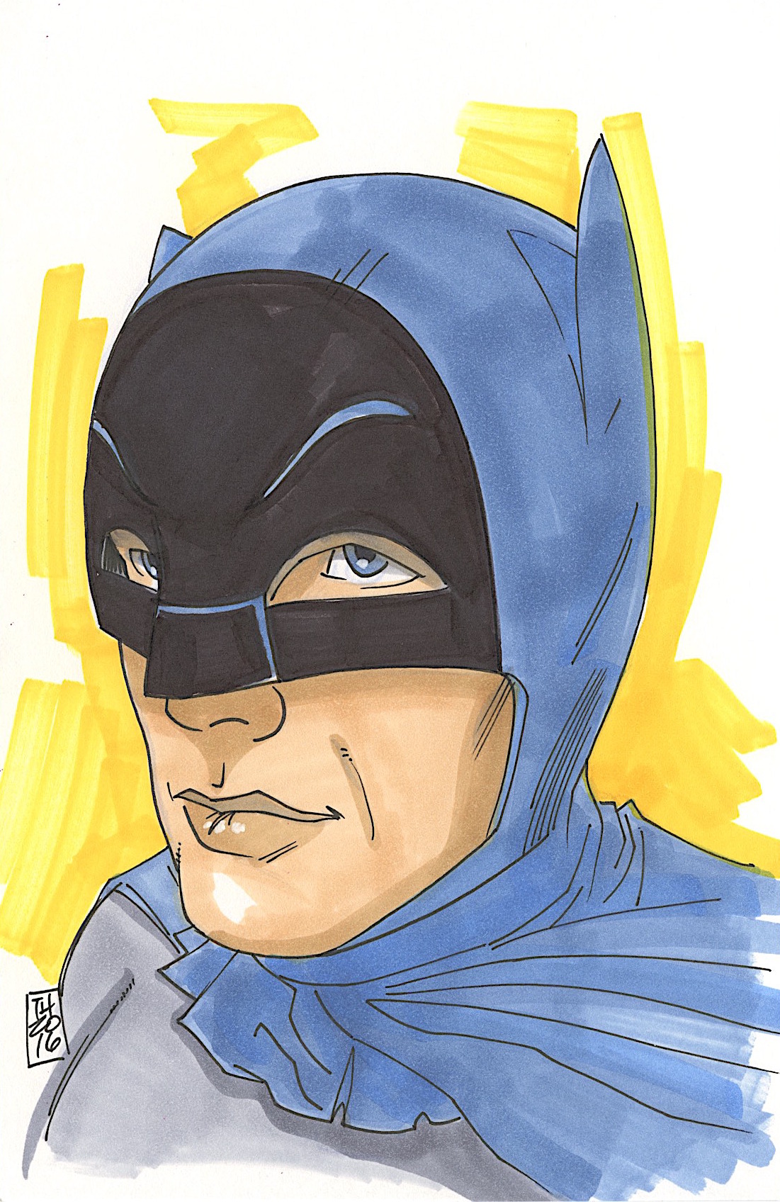 Batman "Adam West" 1/1 ORIGINAL 5.5" x 8.5" Color Drawing on Paper Signed by Tom Hodges
