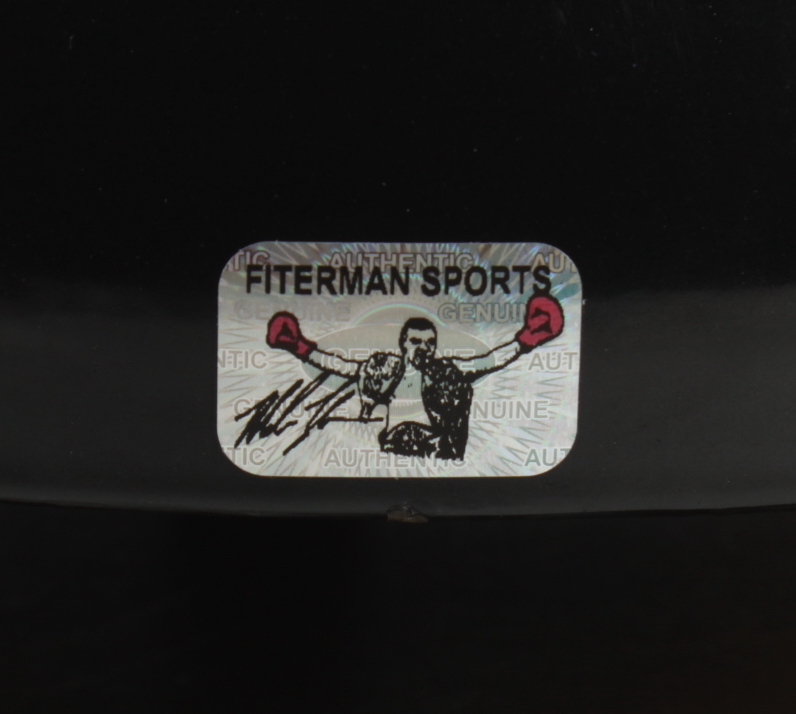 Ringside boxing bell has been hand-signed by Mike Tyson (HOF). Please note, there is a stray pen mark on the bottom of the bell beneath the Ringside logo.