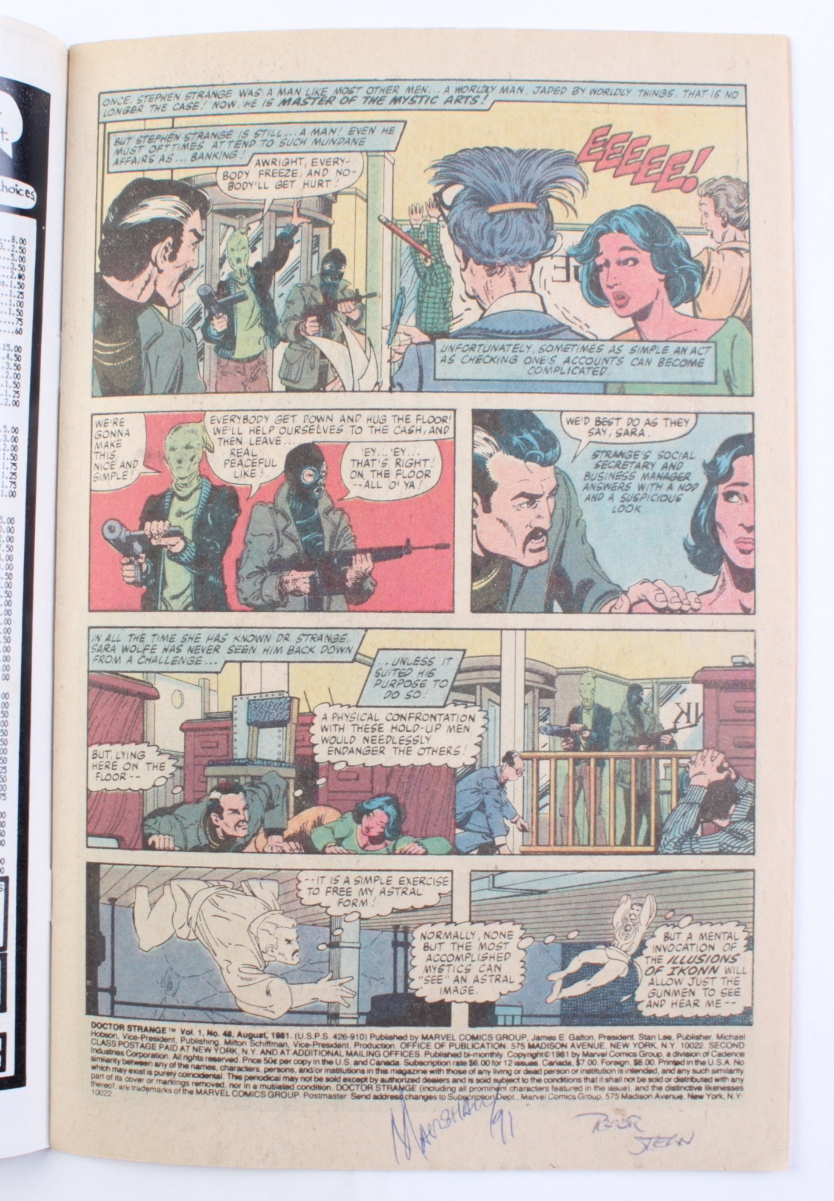 August 1981 "Doctor Strange" #48 comic book. Hand-signed on an inside page by Marshall Rogers (D. 2007, Artist) and Roger Stern (Writer).