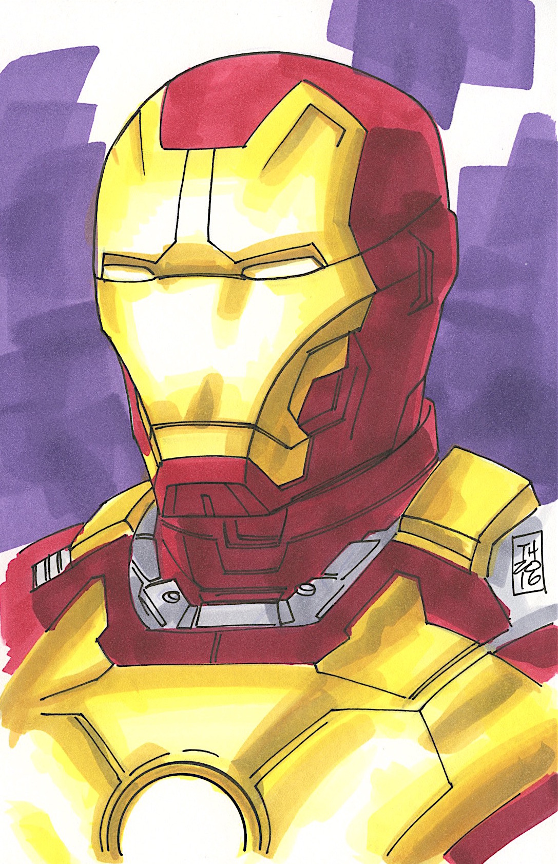 Iron Man "Mark 42" 1/1 ORIGINAL 5.5" x 8.5" Color Drawing on Paper Signed by Tom Hodges