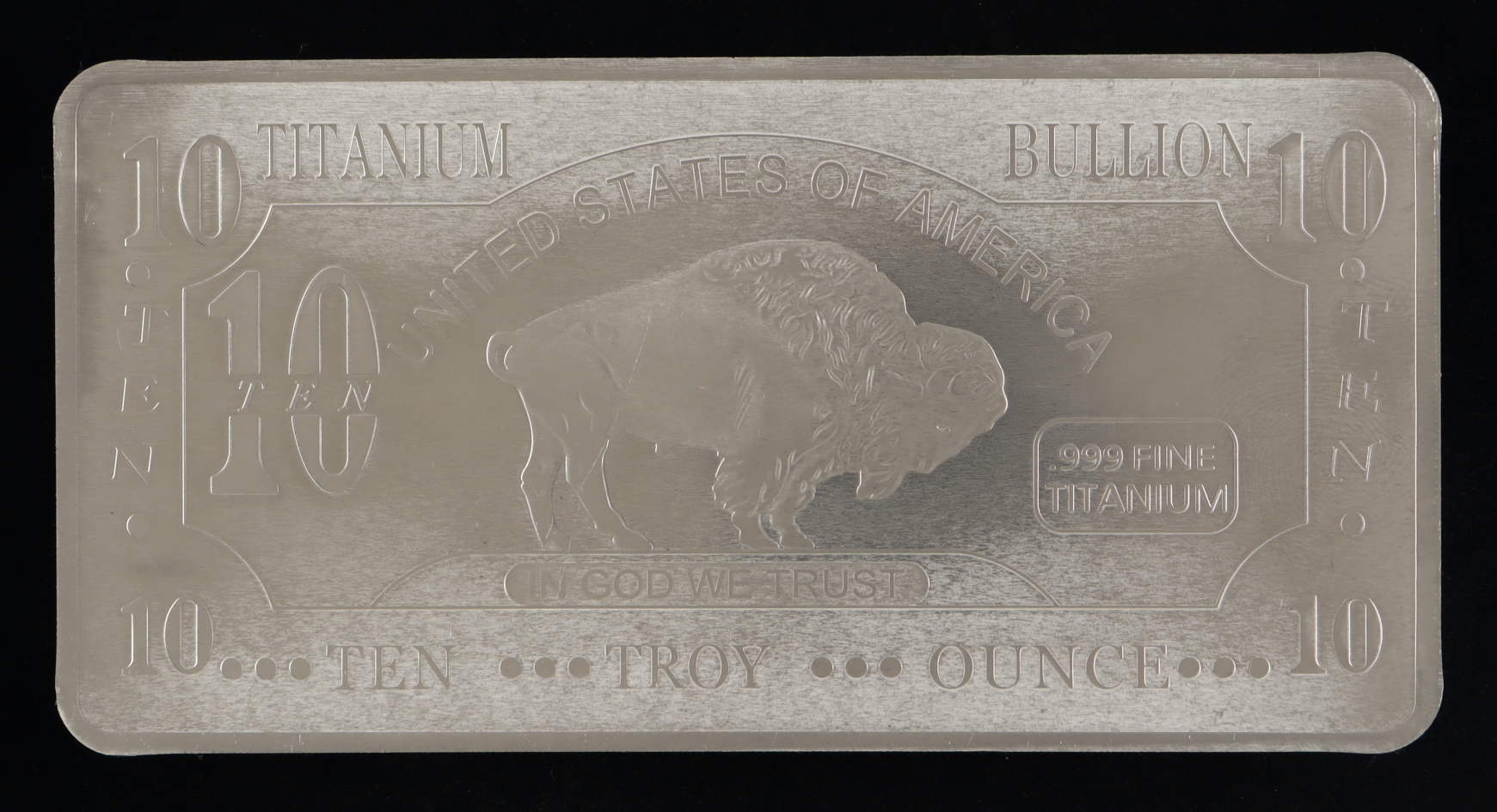 Ten Troy Ounce "Buffalo" .999 Fine Titanium Bullion Bar