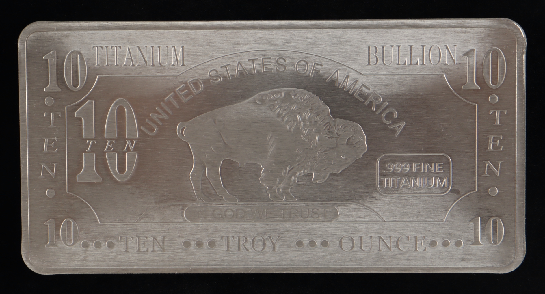 Ten Troy Ounce "Buffalo" .999 Fine Titanium Bullion Bar