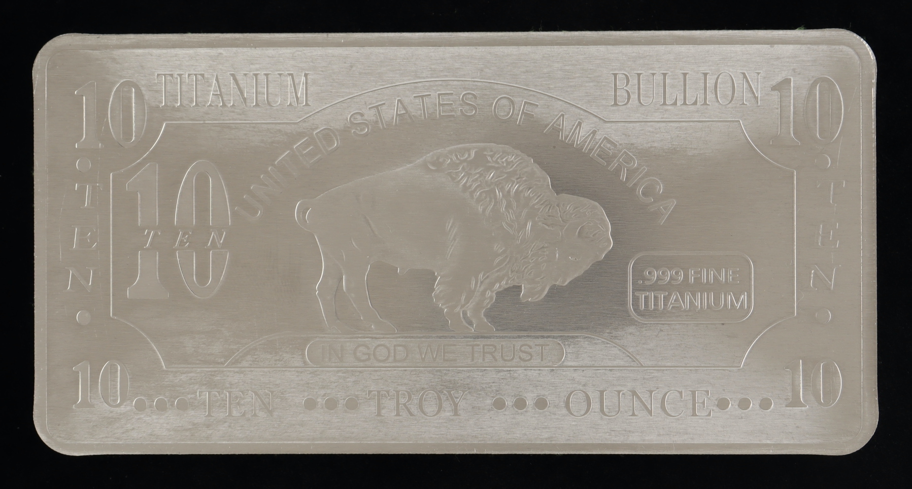 Ten Troy Ounce "Buffalo" .999 Fine Titanium Bullion Bar