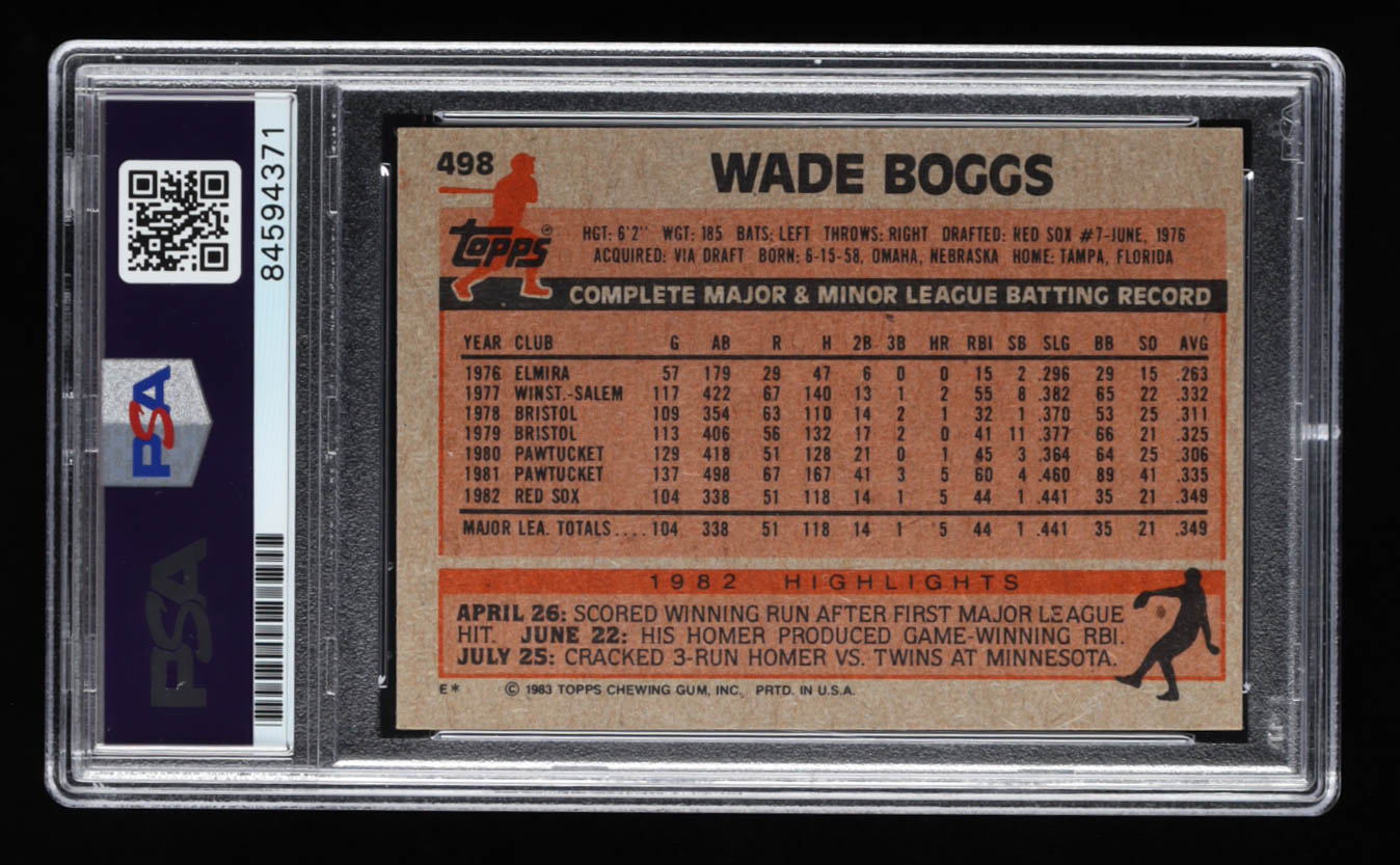 Wade Boggs Signed 1983 Topps #498 RC (PSA)