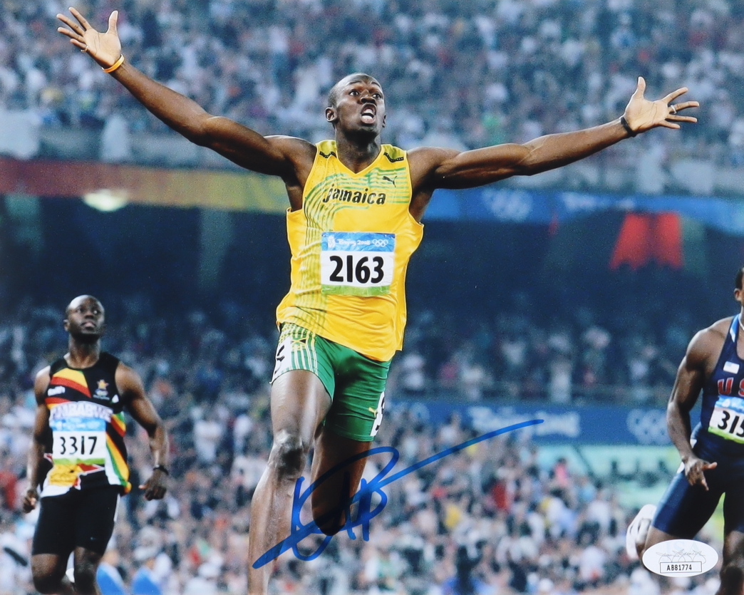 Photo measures 8" x 10" in size and has been hand-signed by Usain Bolt.