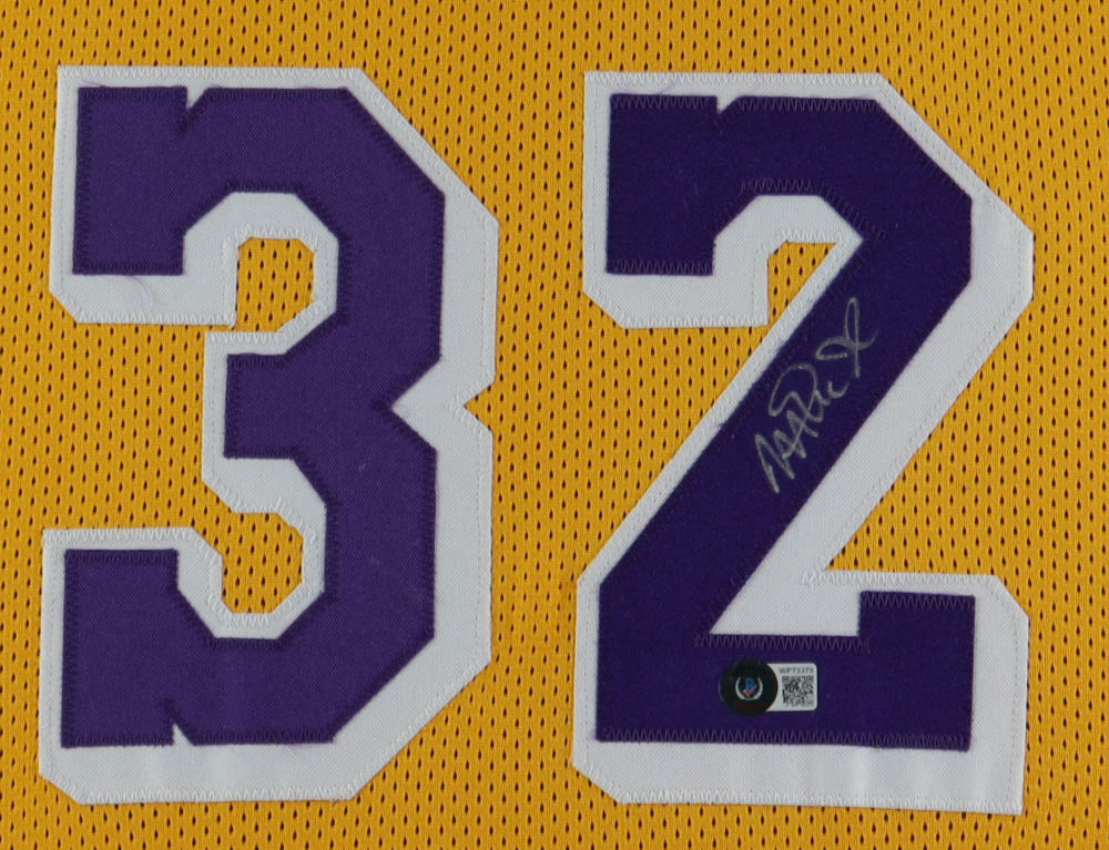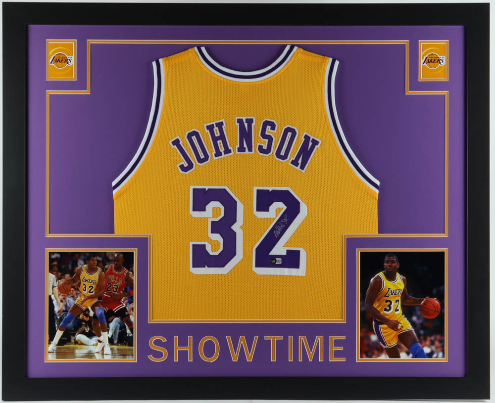 Custom frame measures approximately 35" x 43" in size and features a jersey hand-signed by Magic Johnson (HOF).