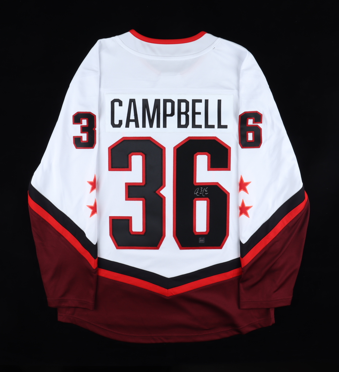 Fanatics on-ice style jersey. Everything is sewn on, size L. Hand-signed by Jack Campbell (Toronto Maple Leafs).