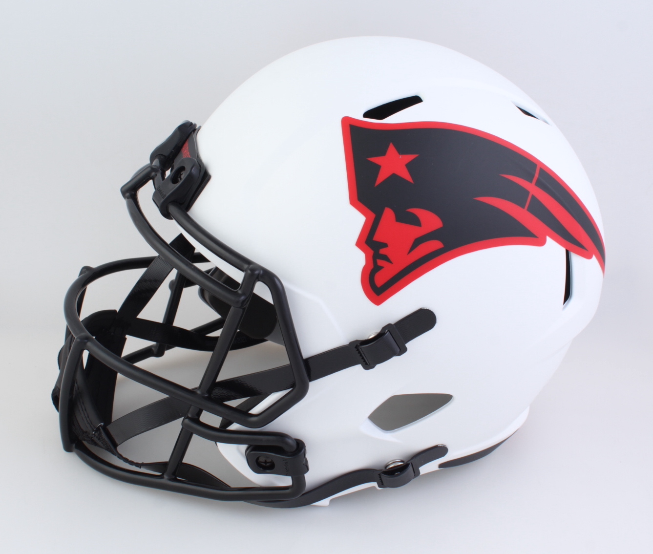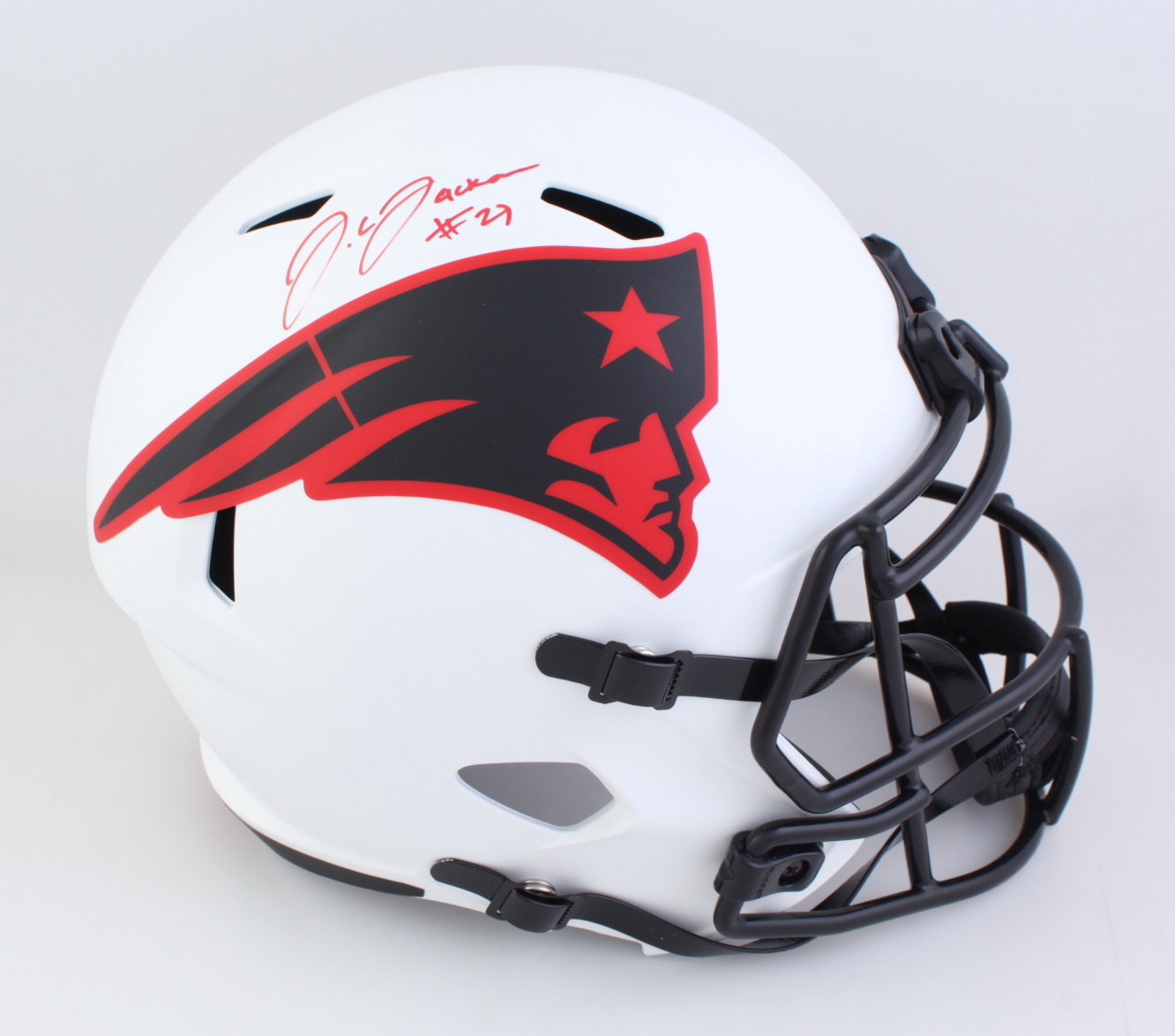 Riddell New England Patriots full-size replica lunar eclipse alternate speed helmet. Hand-signed by J.C. Jackson.