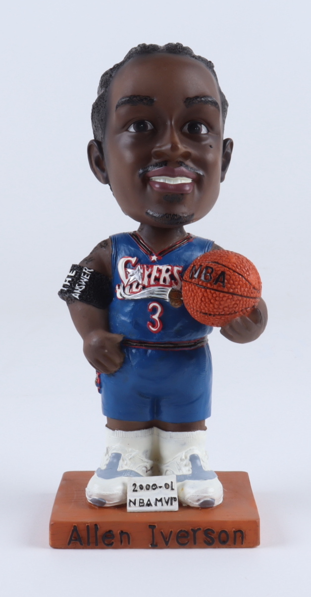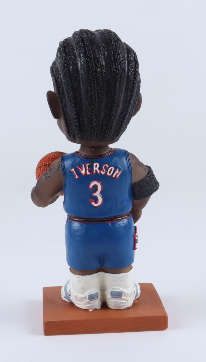 Philadelphia 76ers Allen Iverson Bobblehead measures approximately 7.5" tall. Includes original packaging.