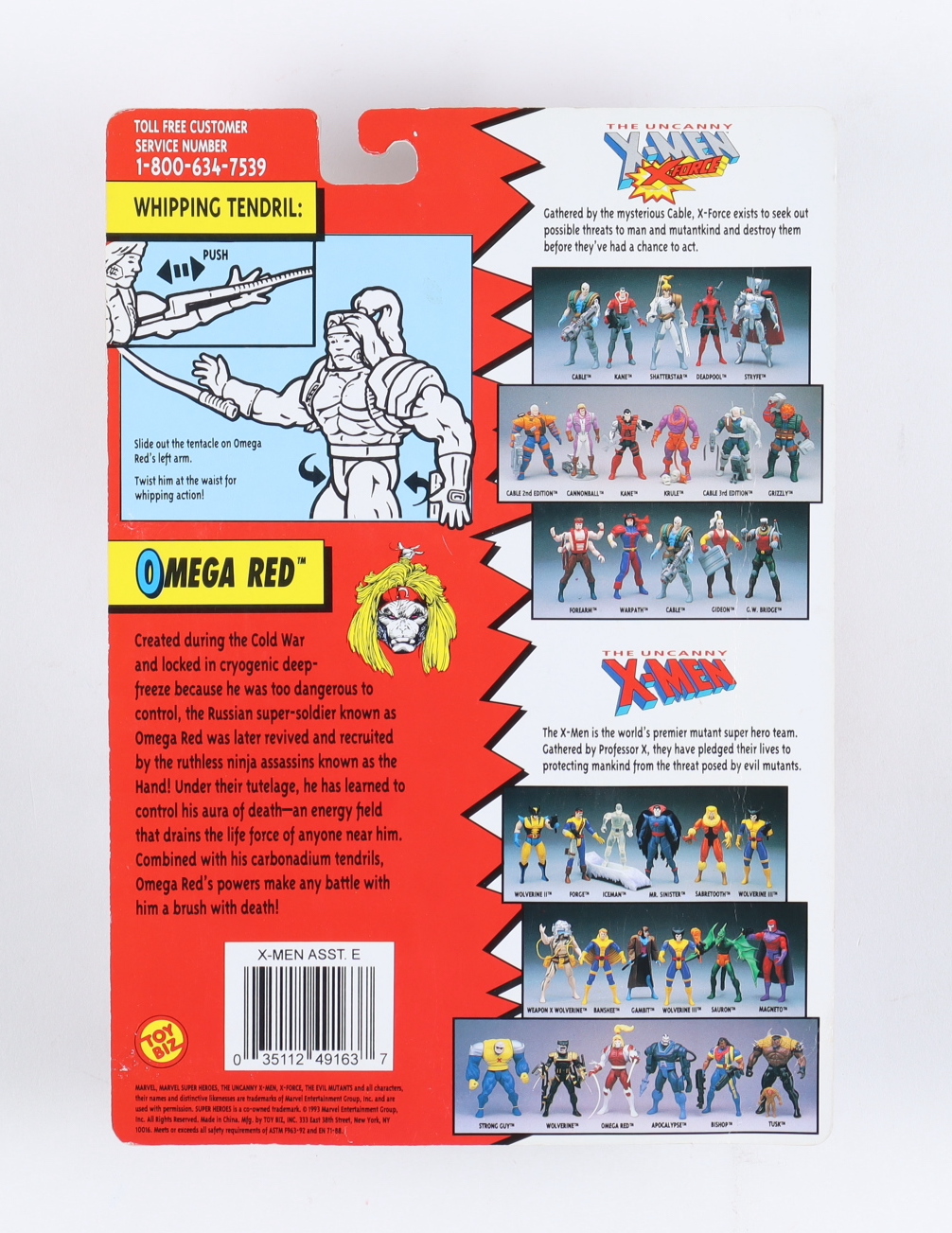 1993 Marvel The Uncanny X-Men Omega Red action figure measures approximately 7" tall. Please note that action figure is in original packaging.