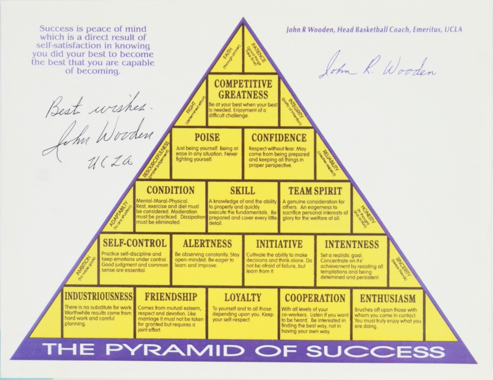 John Wooden Signed "Pyramid of Success" 8x10 Photo Inscribed "Best Wishes" & "UCLA" (Beckett)