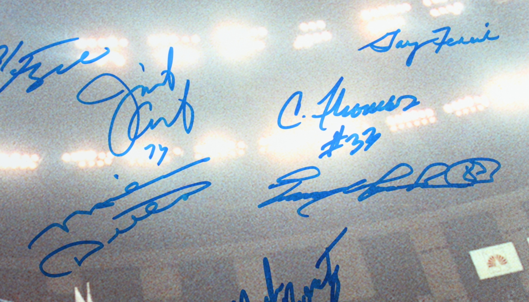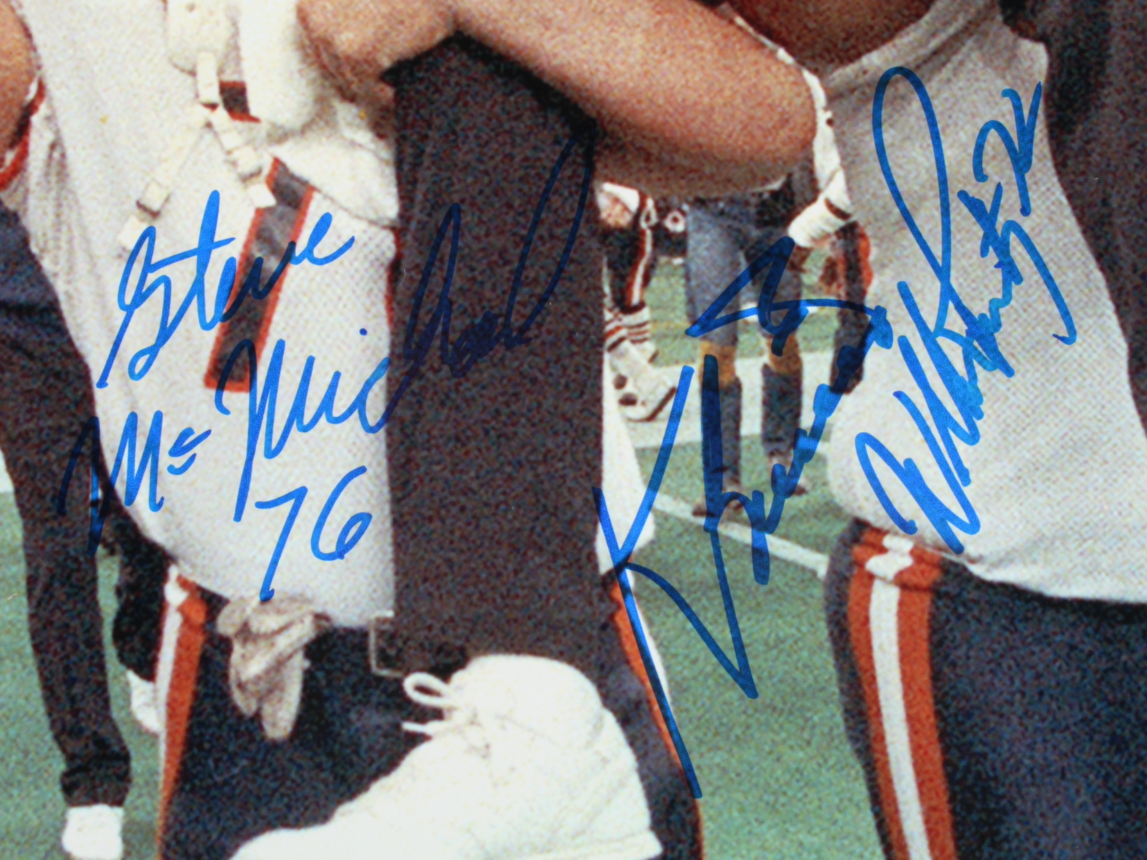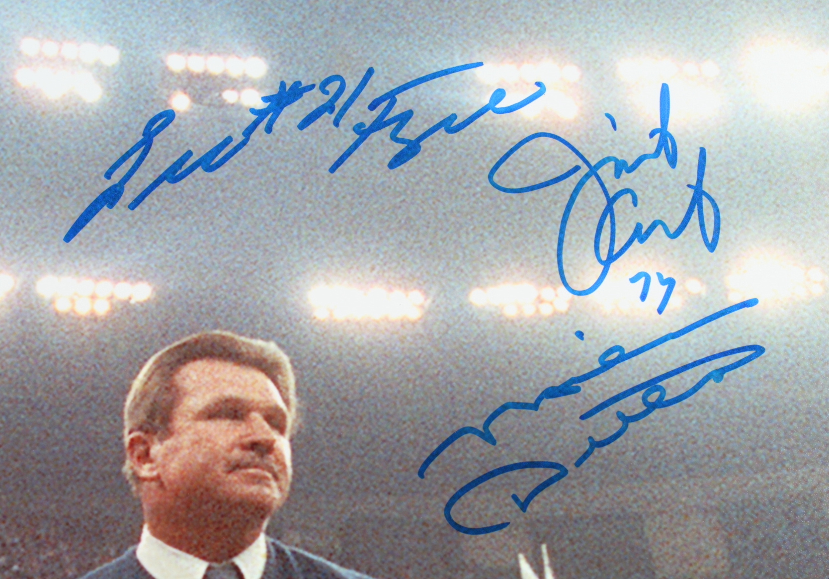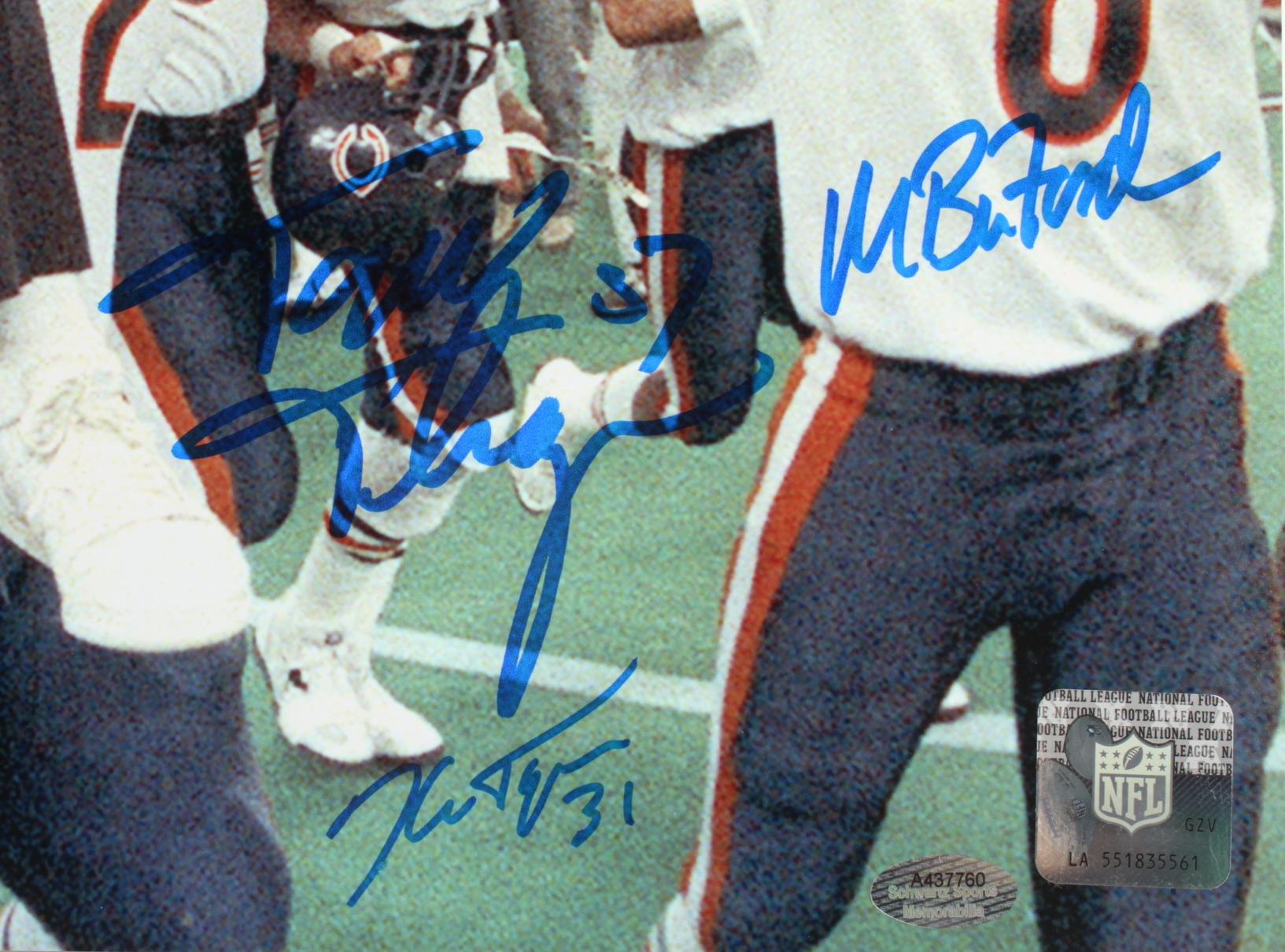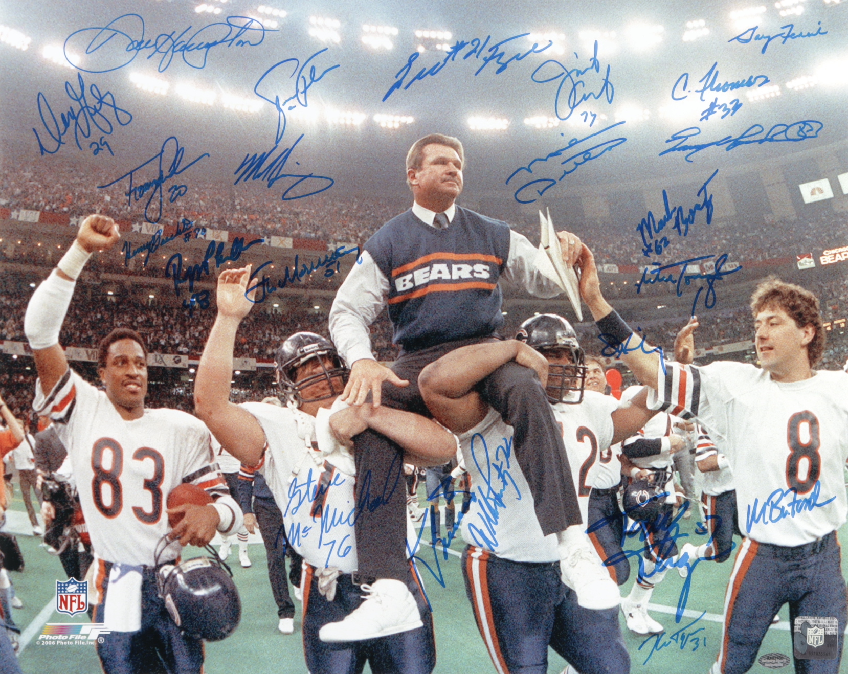 Photo measures 16" x 20" in size and has been hand-signed by (23) including Mike Ditka, Mike Singletary, Dan Hampton, Steve McMichael, Gary Fencik, William Perry, Jay Hilgenberg, Leslie Frazier, Jim Covert, Mark Bortz, Tom Thayer, Steve Fuller, Mike Tomczak, Kevin Butler, Henry Waechter, Emery Moorehead, Denis Gentry, Reggie Phillips, Jim Morrissey, Maury Buford, Calvin Thomas, Thomas Sanders and Ken Taylor (Chicago Bears).
