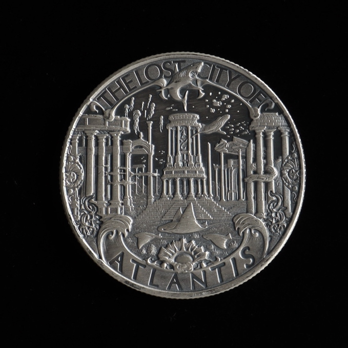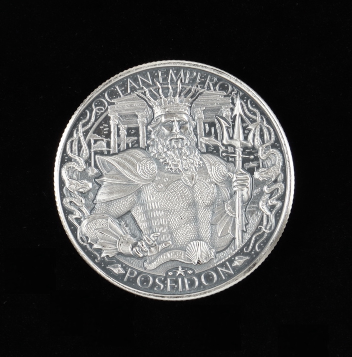 1 oz .999 Fine Silver Lost City of Atlantis - Poseidon Antiqued Finished Bullion Round
