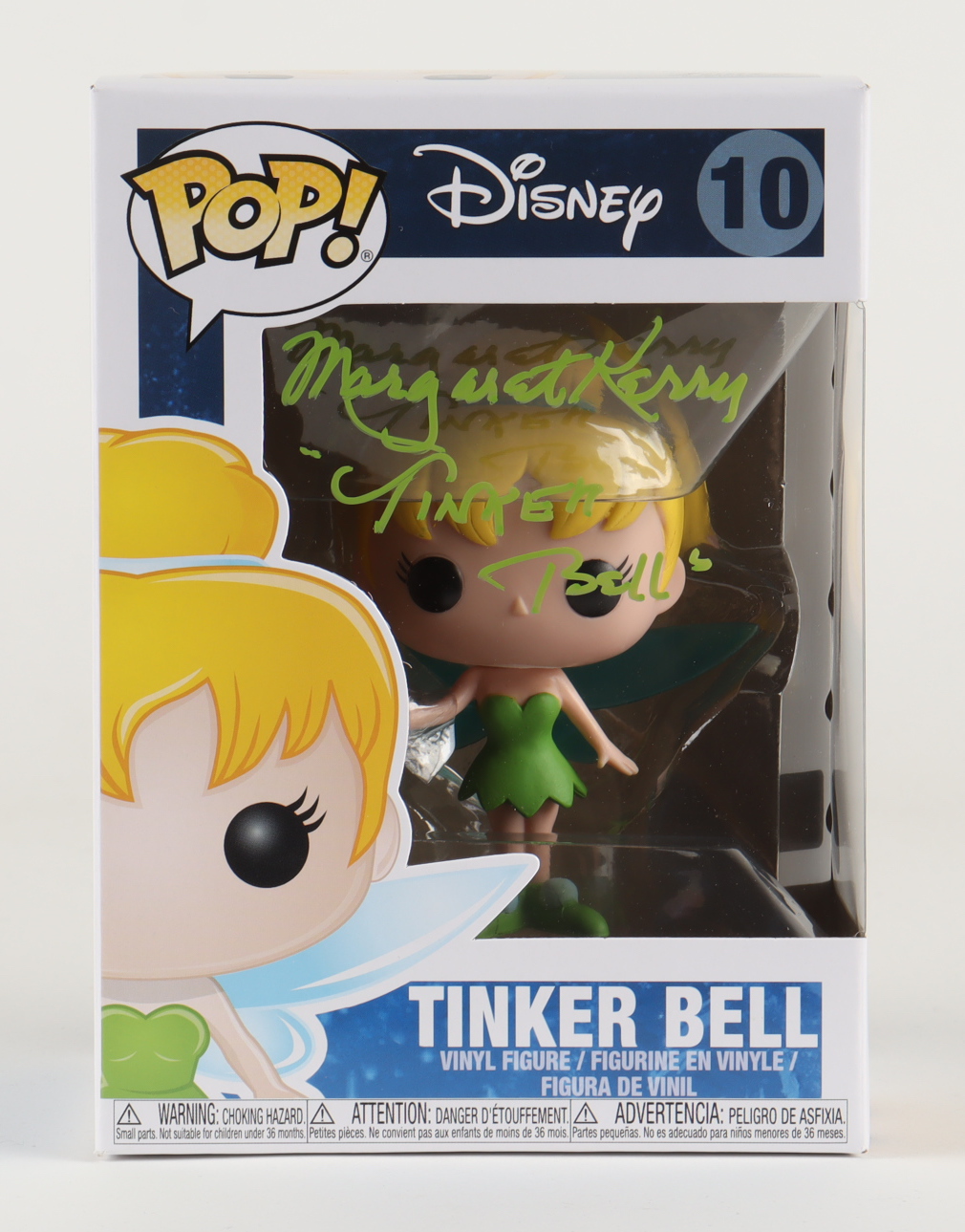 Funko Pop! vinyl figure measures approximately 4" in height and has been hand-signed and inscribed on the packaging by Margaret Kerry (Tinker Bell).