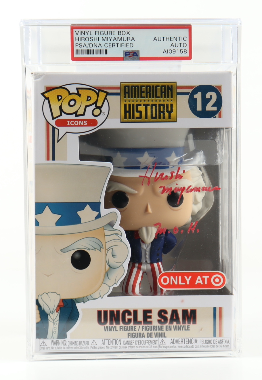 Hiroshi H. Miyamura Signed American History #12 Uncle Sam Funko Pop! Vinyl Figure Inscribed "M.O.H." (PSA)