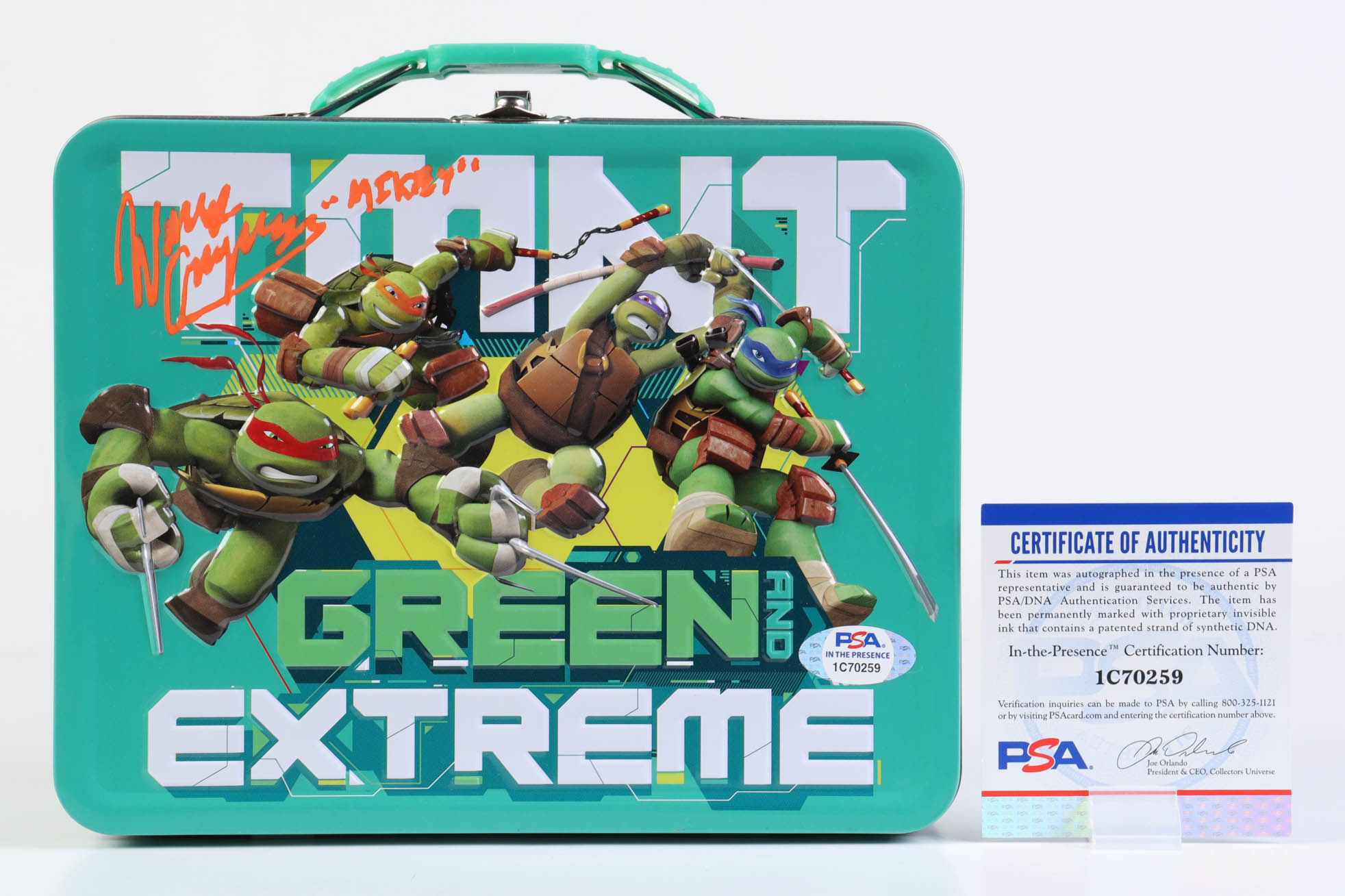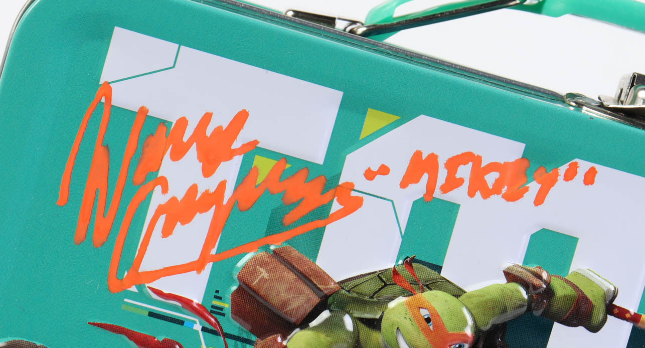Wayne Grayson Signed Teenage Mutant Ninja Turtles Tin Lunch Box Inscribed "Mikey" (PSA)