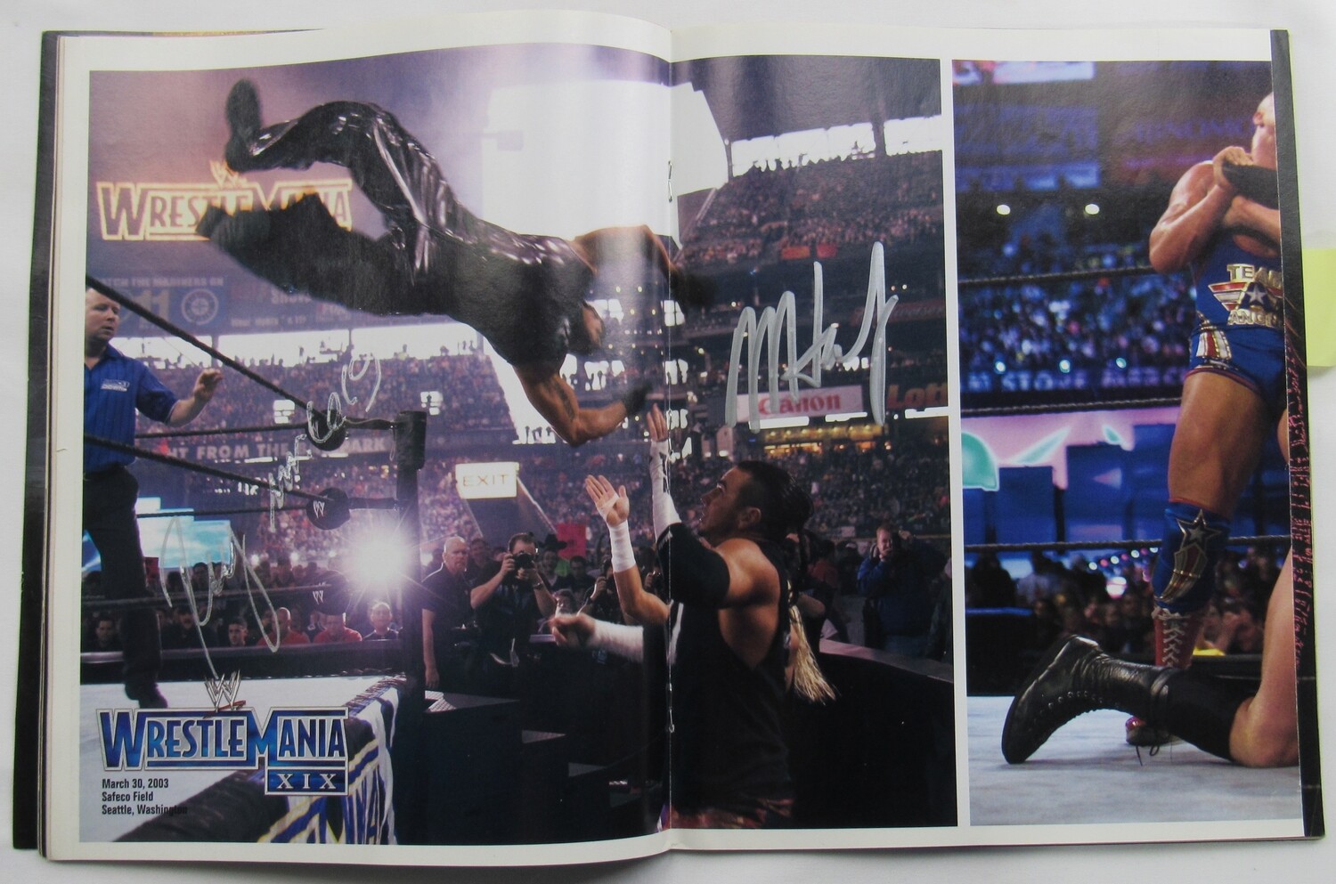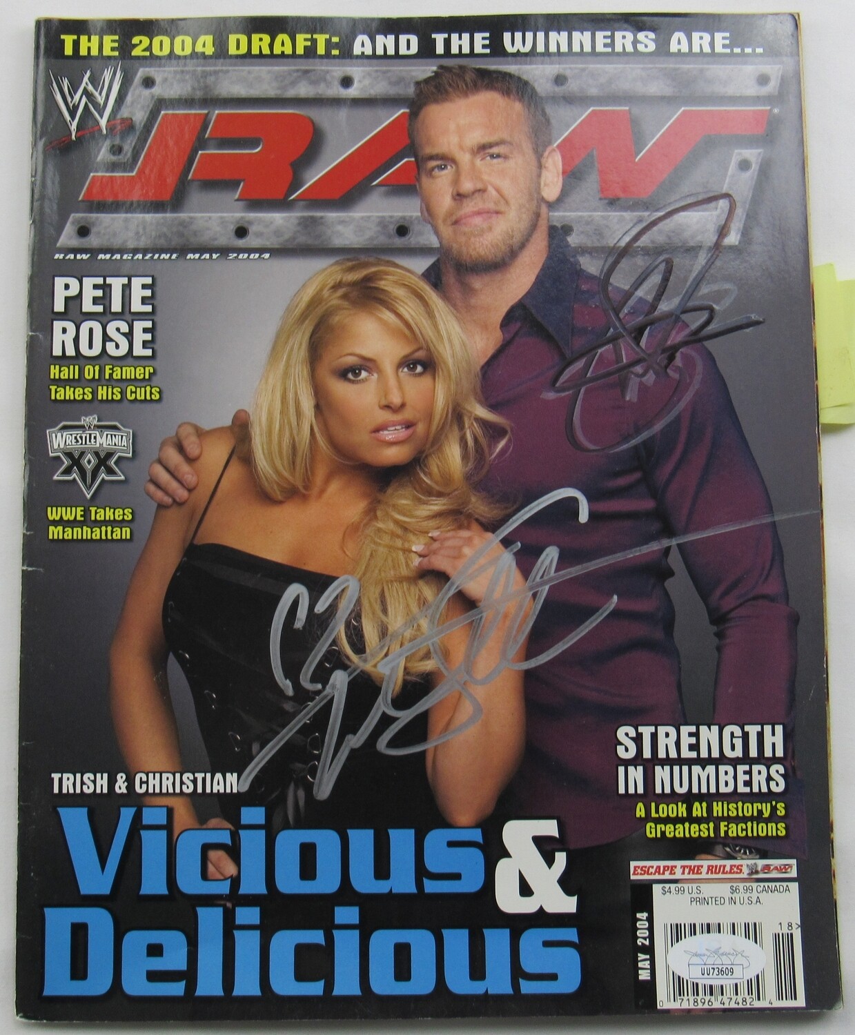 Magazine has been hand-signed by (5) including Christian, Trish Stratus, Rey Mysterio, Matt Hardy and Randy Orton.