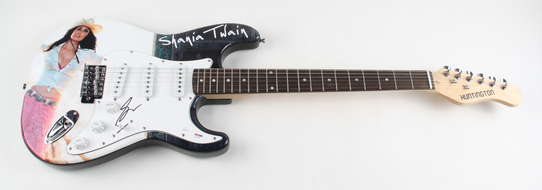 Custom Huntington 39" electric guitar. Hand-signed on the pickguard by Shania Twain.