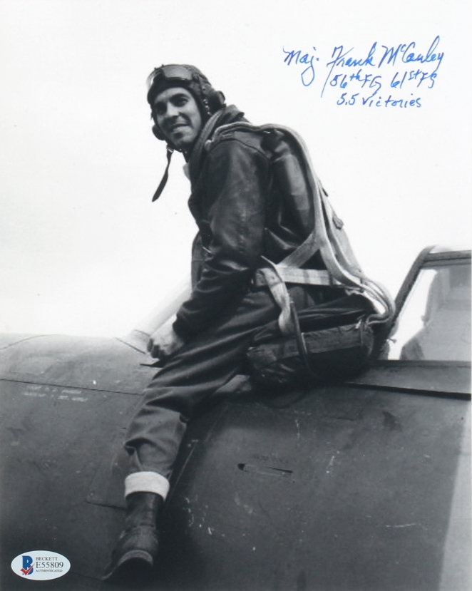 Frank McCauley Signed WWII 8x10 Photo Inscribed "Maj.", "56th FG", "61st FS" & "5.5 Victories" (Beckett)