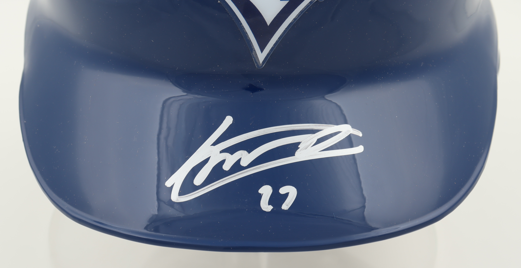 Rawlings Toronto Blue Jays Full-Size replica batting helmet. Hand-signed by Vladimir Guerrero Jr..