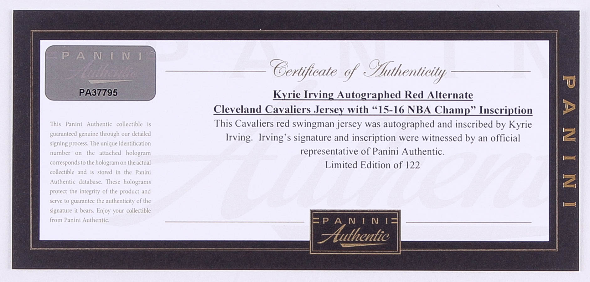 Kyrie Irving Signed LE Cavaliers Adidas Alternate Jersey Inscribed "15-16 NBA Champ" Limited Edition #1/122 (Panini COA)