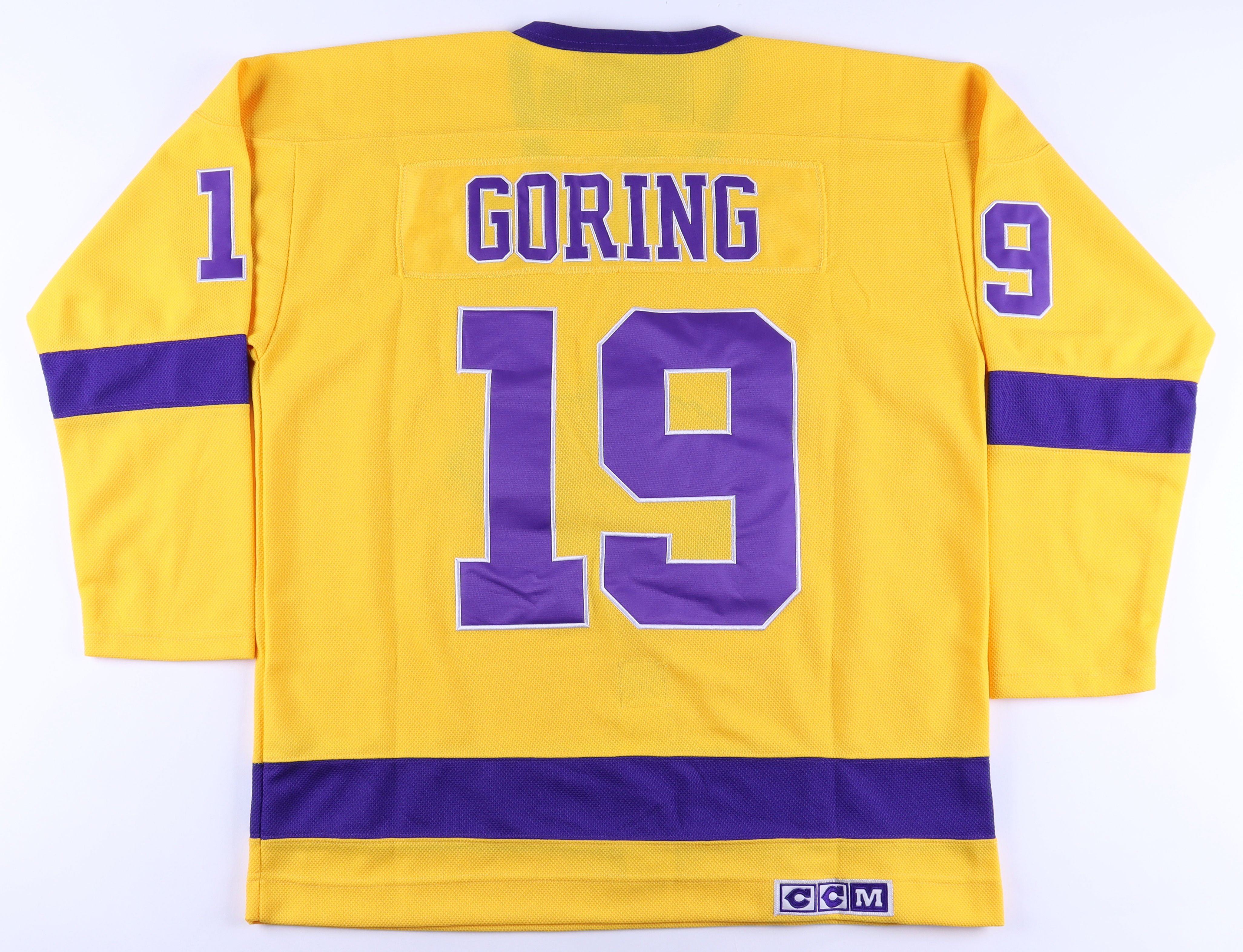 CCM on-ice style jersey. Everything sewn on, size 50. Hand-signed by Butch Goring (Los Angeles Kings).