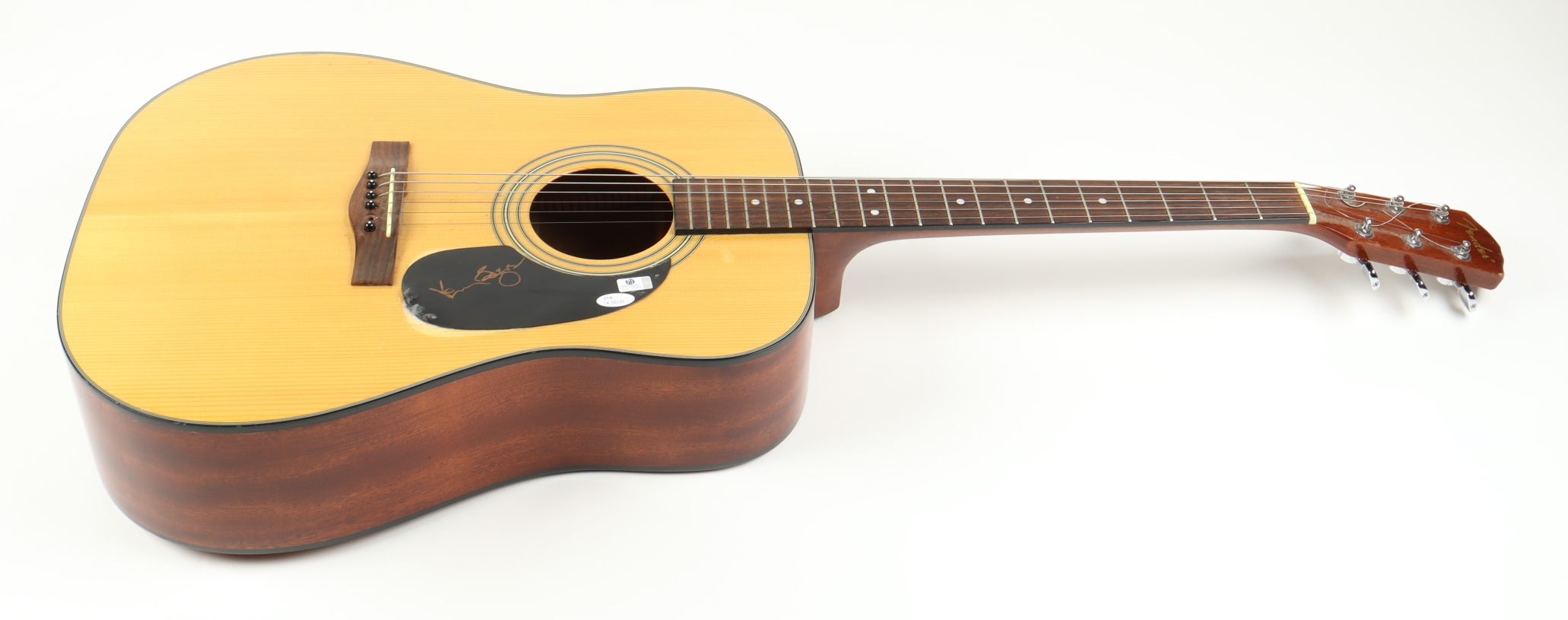 Fender acoustic guitar measures 39" from top to bottom. Hand-signed on the pickguard by Kenny Rogers (D. 2020).