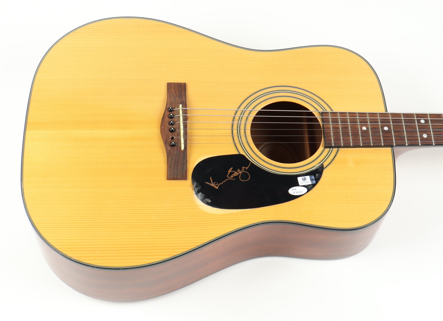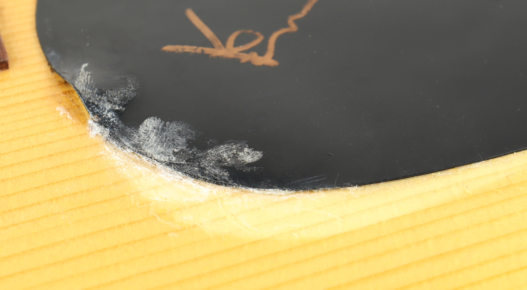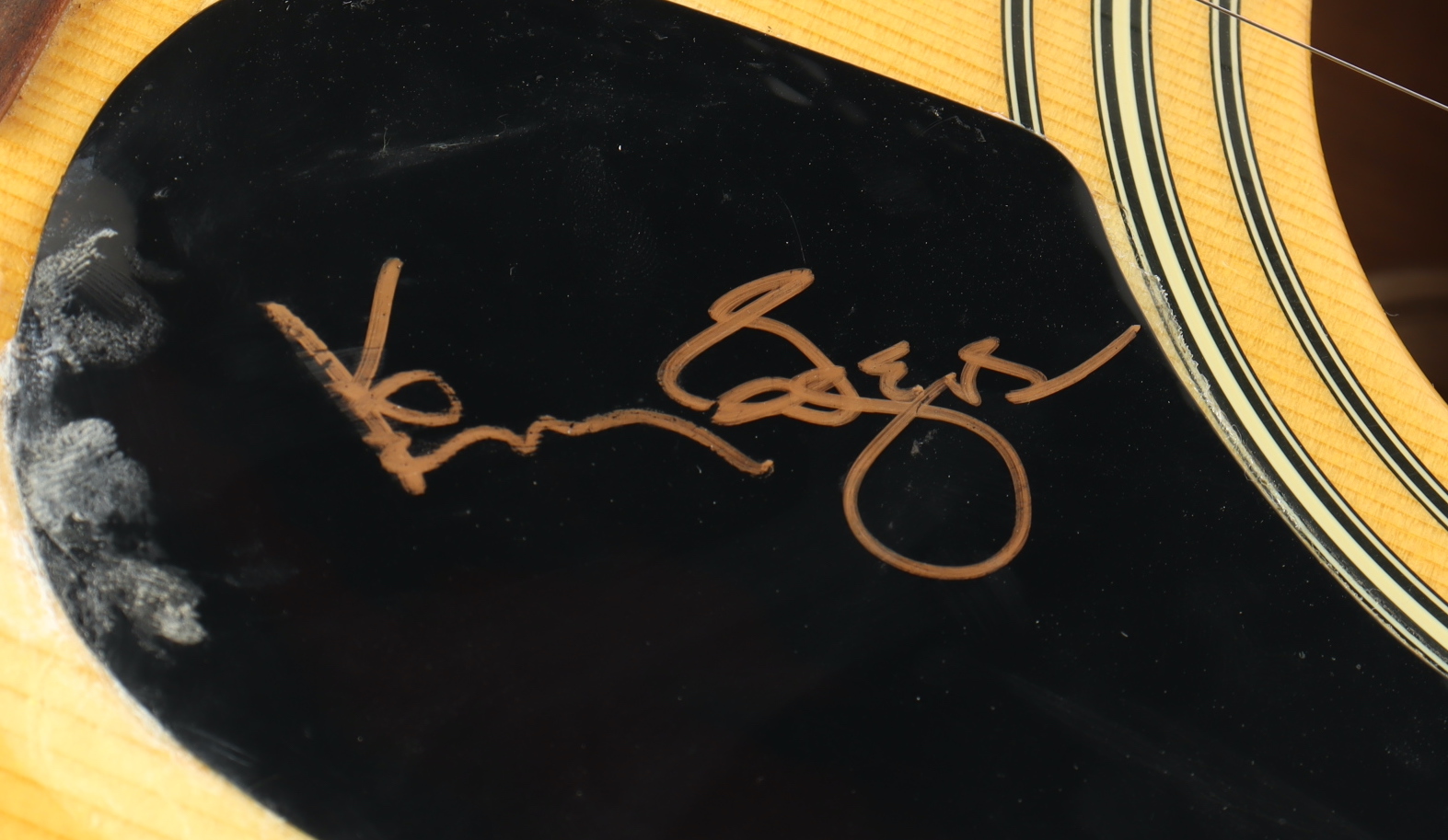 Please note, the pickguard is lightly warped to the left of the signature and the neck has been lightly chipped.
