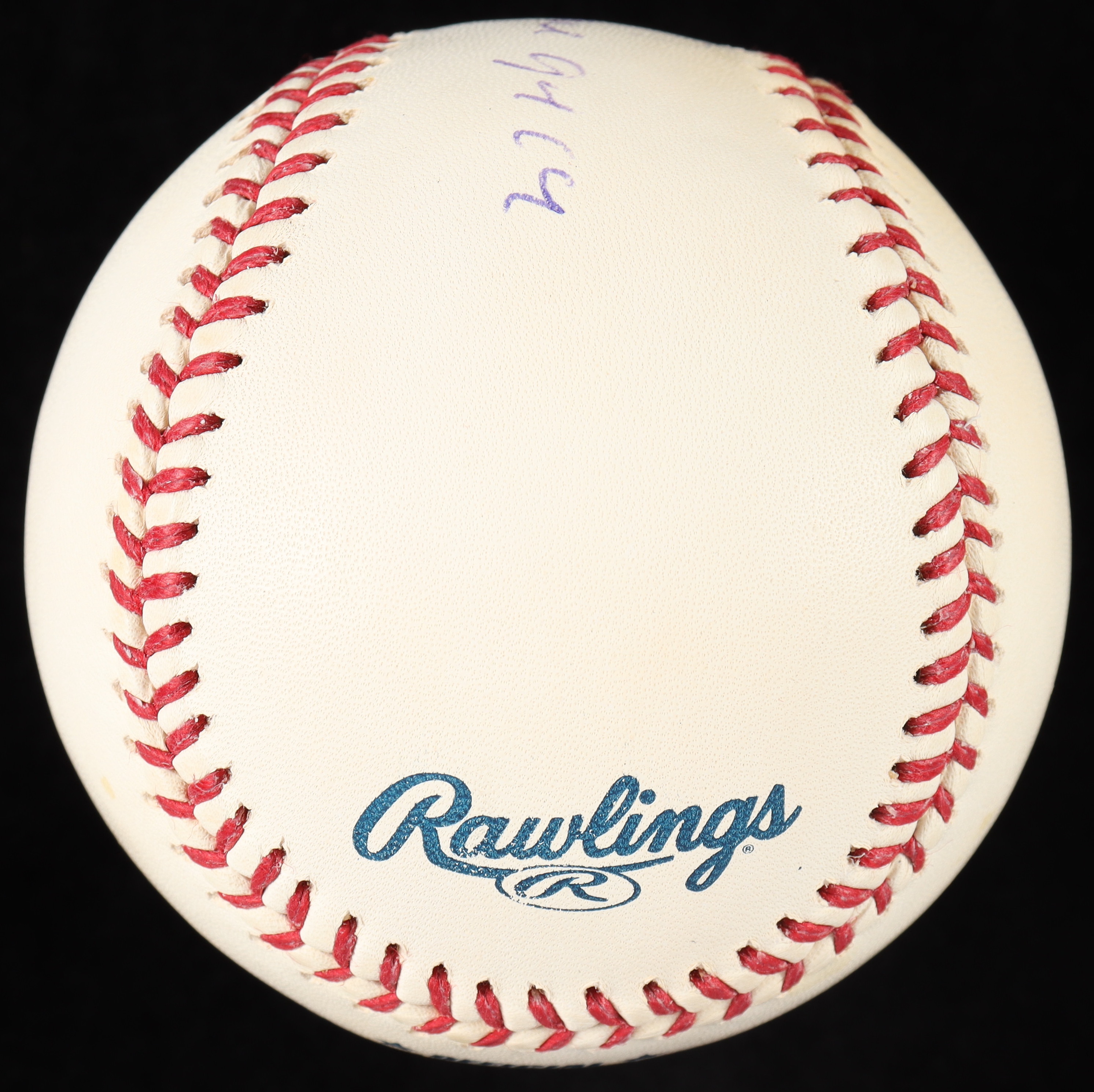 Rawlings Official Major League baseball. Hand-signed and inscribed by David Cone (Kansas City Royals). Please note, the baseball is naturally toned.