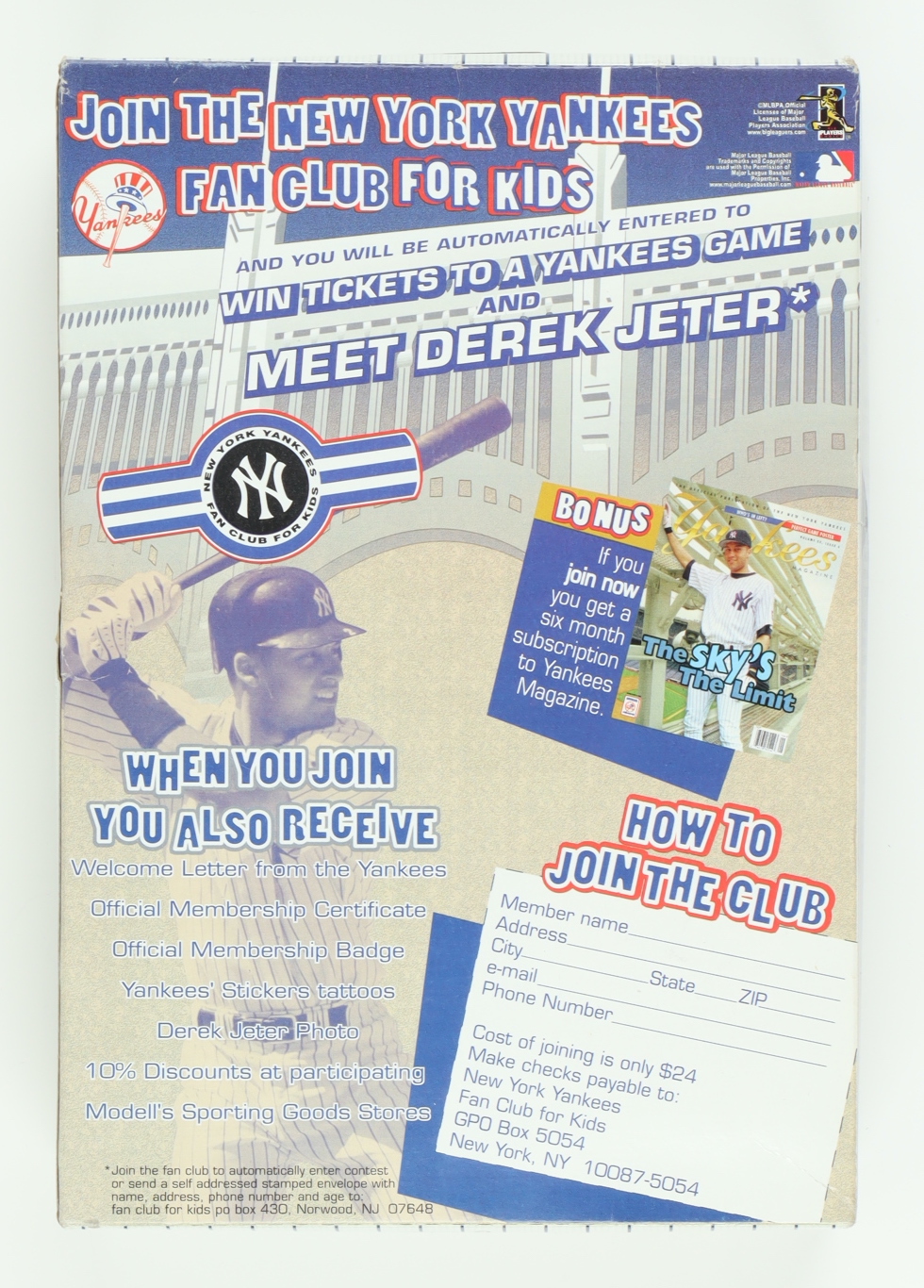Derek Jeter Yankees LE Jeter's Frosted Flakes Cereal Box