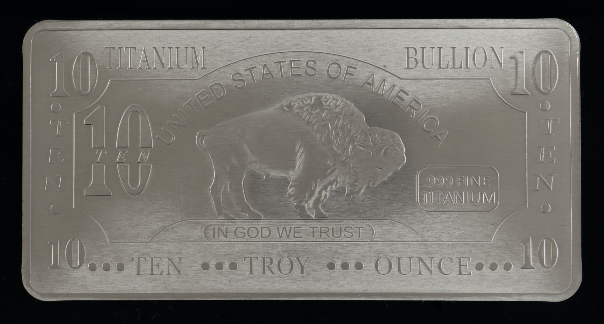 Ten Troy Ounce "Buffalo" .999 Fine Titanium Bullion Bar