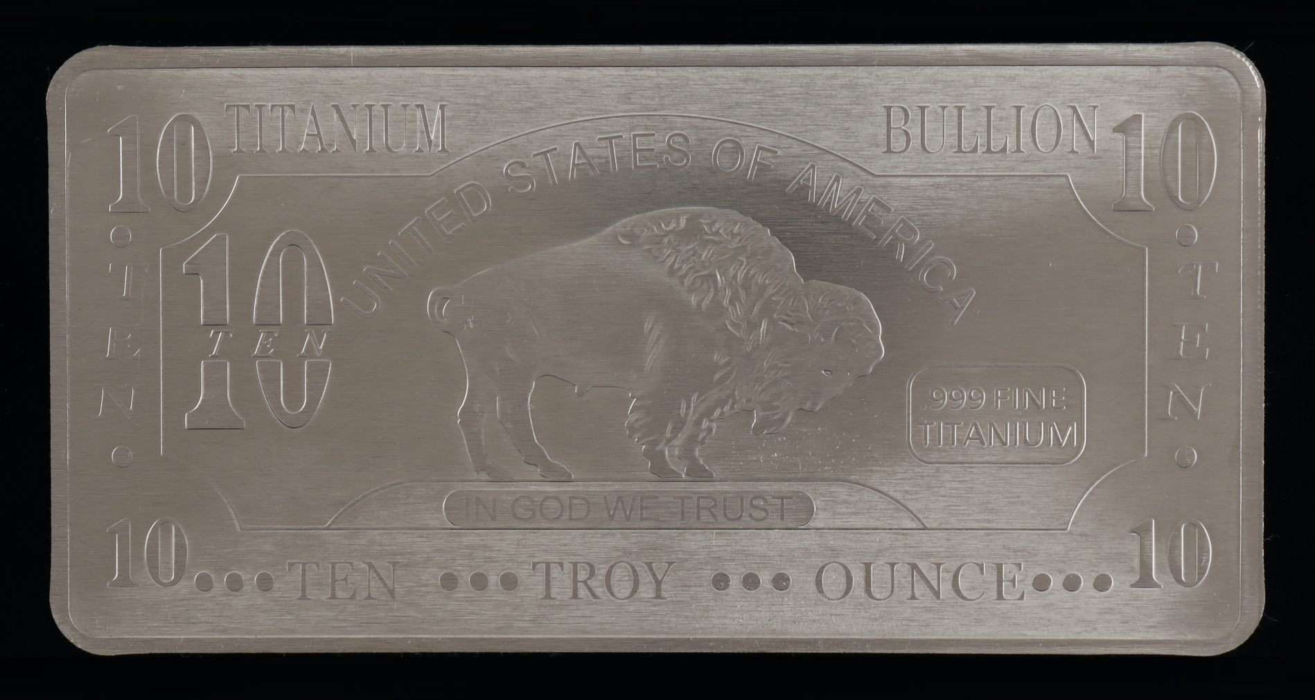 Ten Troy Ounce "Buffalo" .999 Fine Titanium Bullion Bar