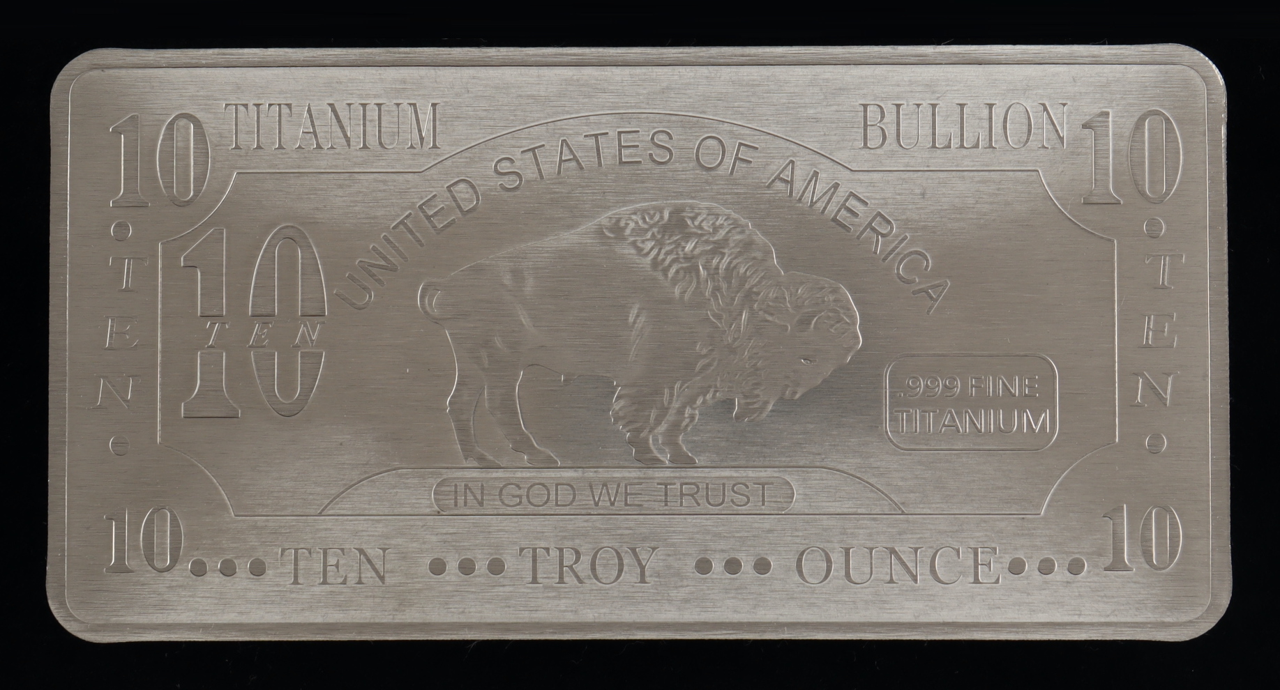 Ten Troy Ounce "Buffalo" .999 Fine Titanium Bullion Bar