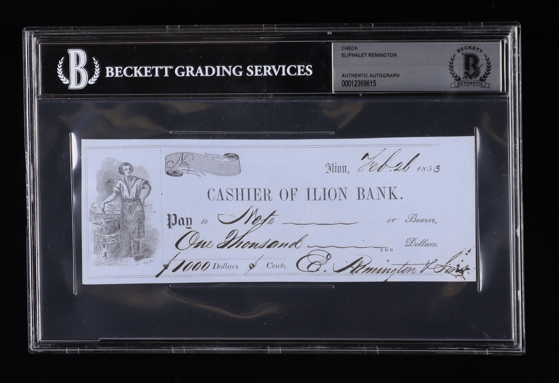 Eliphalet Remington Signed 1853 Bank Check (BGS)