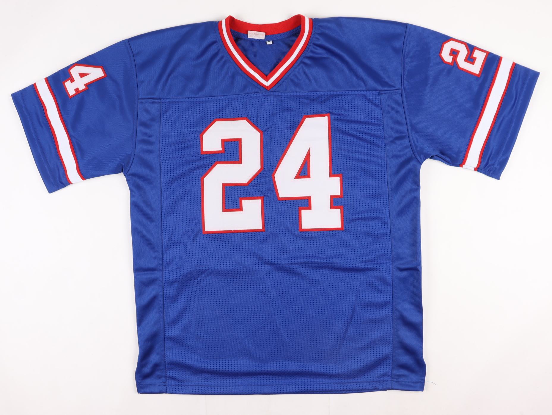 Custom on-field style jersey. Everything is sewn on, size XL. Hand-signed and inscribed by Ottis Anderson.