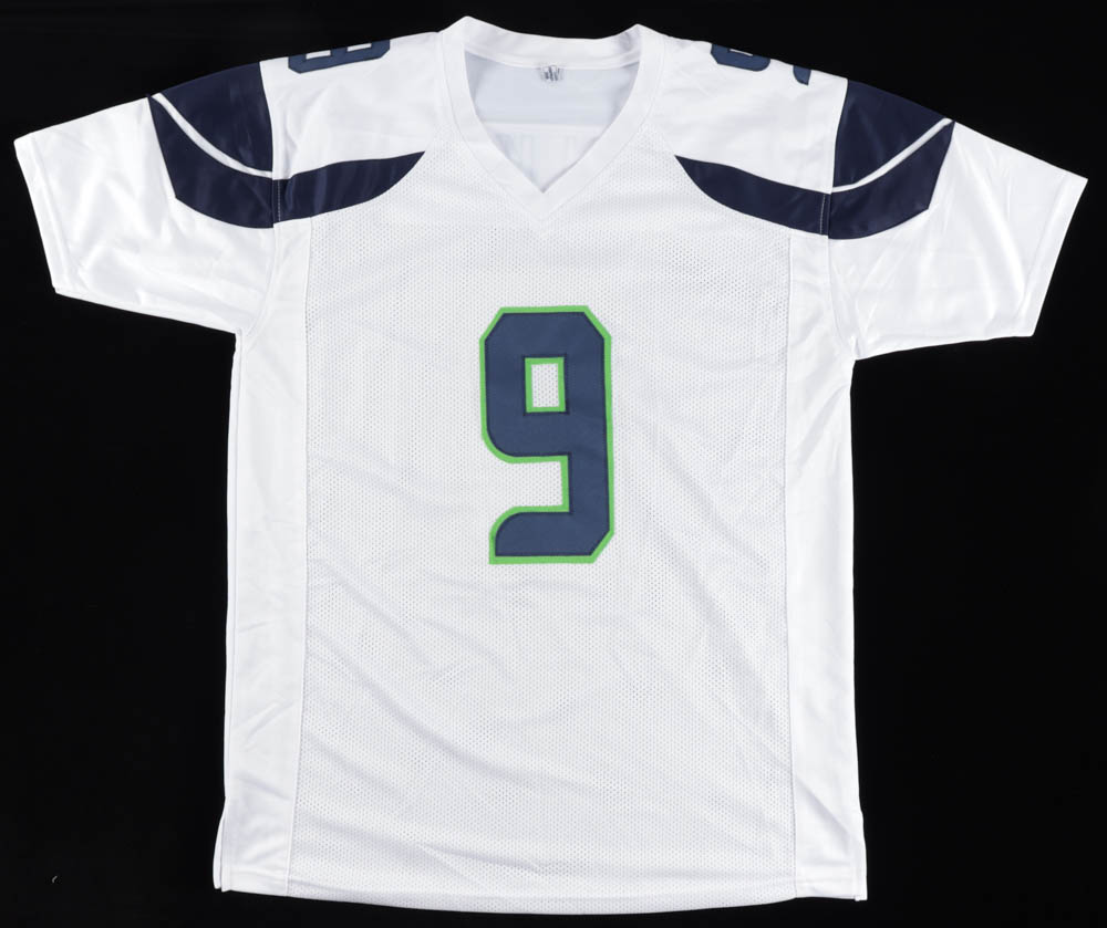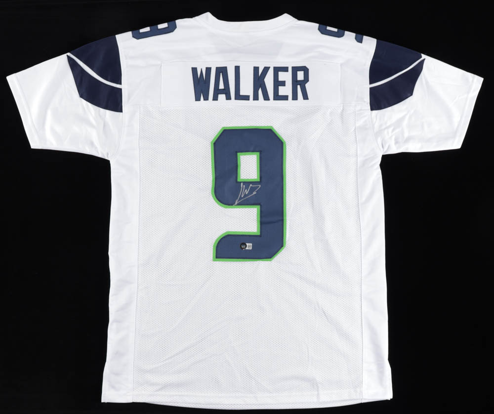 Custom on-field style jersey. Everything is sewn on, size XL. Hand-signed by Kenneth Walker III.