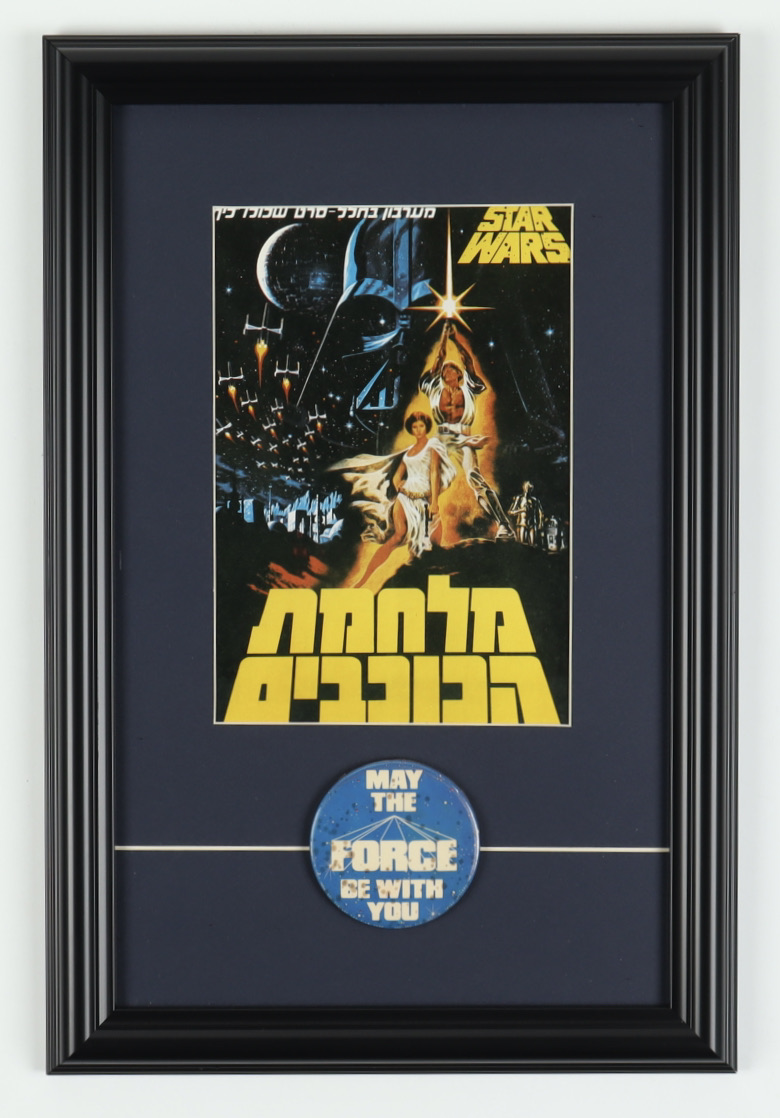 "Star Wars" 12x18 Custom Framed Isreali Poster with 1977 Original Pin
