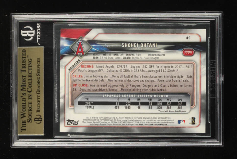 Shohei Ohtani 2018 Bowman #49 RC (BGS 9.5)